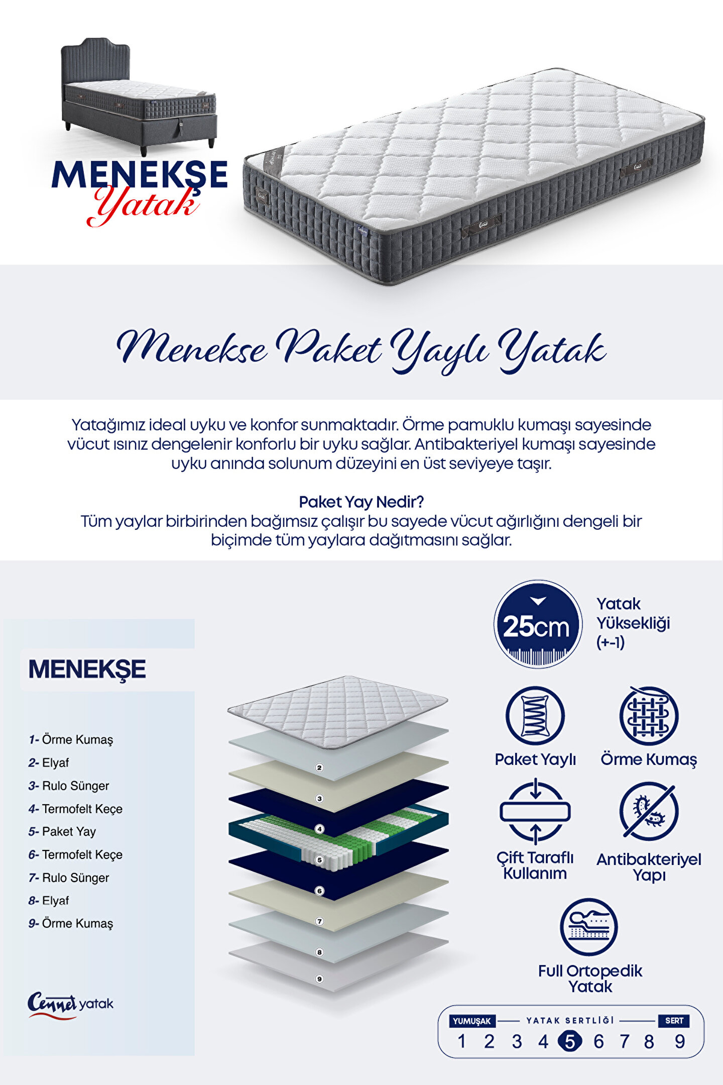 CENNET YATAK Menekşe Modeli Tek Kişilik Antibakteriyel Full Ortopedik Yatak, Baza ve Başlık 3 lü Set