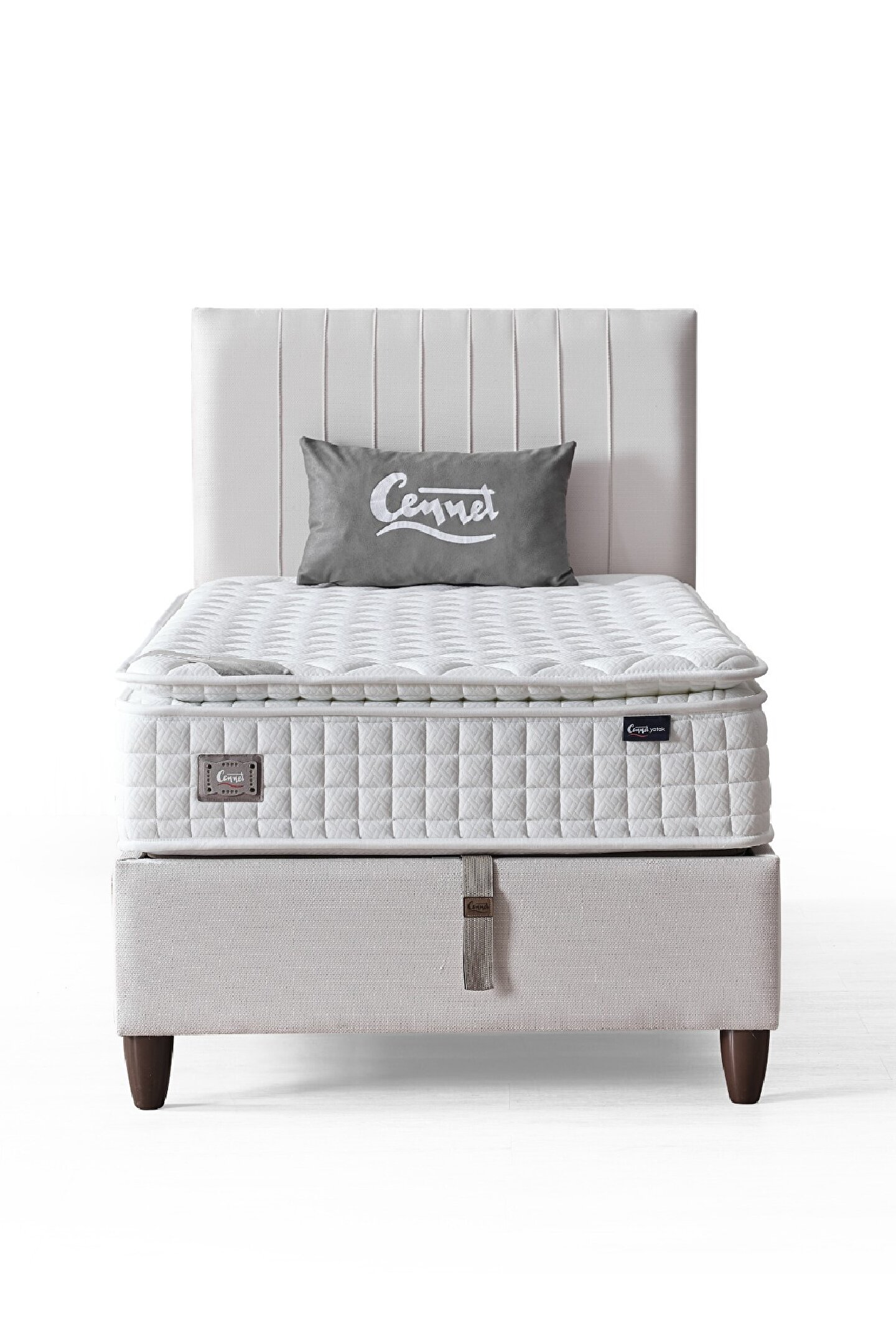 CENNET YATAK Zambak Tek Kişilik Sandıklı Baza ve Başlık Seti 2’li Set