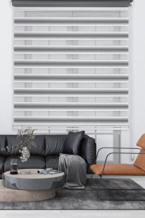 Modern ve şık tasarımıyla dikkat çeken zebra perde, mekanınıza zarif bir dokunuş katıyor; Gri ve beyaz renk geçişleriyle dekorasyonunuza sofistike bir hava sunuyor; Zebra tipi yapısı sayesinde hem şeffaf hem de opak kumaş katmanları arasında kolayca geçiş yapabilme imkanı sağlar; Güneş ışığını kontrol edebilme özelliği ile odanızın aydınlık seviyesini kişisel tercihinize göre ayarlayabilirsiniz; Dayanıklı ve kaliteli malzemeden üretilmiş olup, uzun süreli kullanım için idealdir;