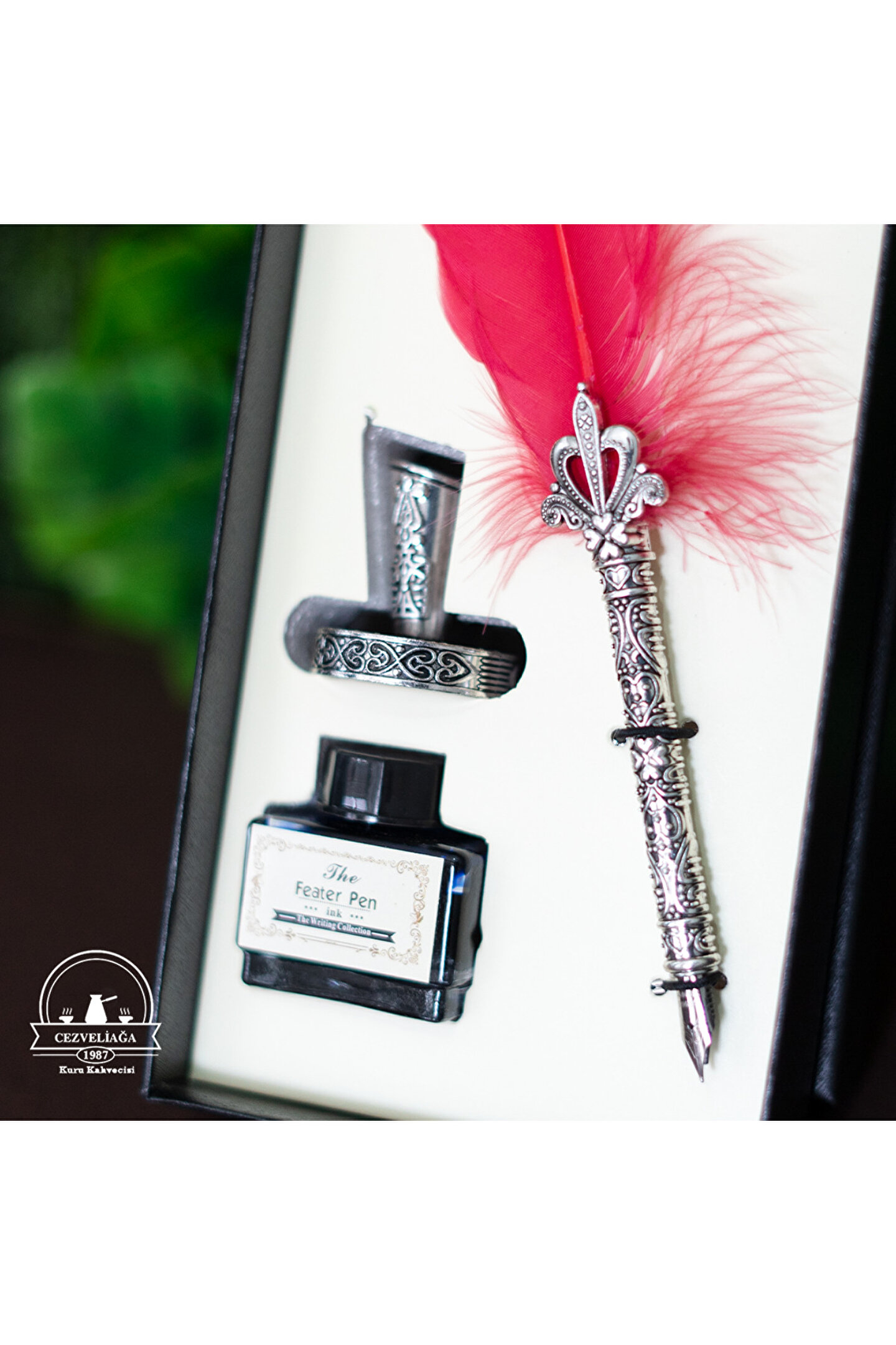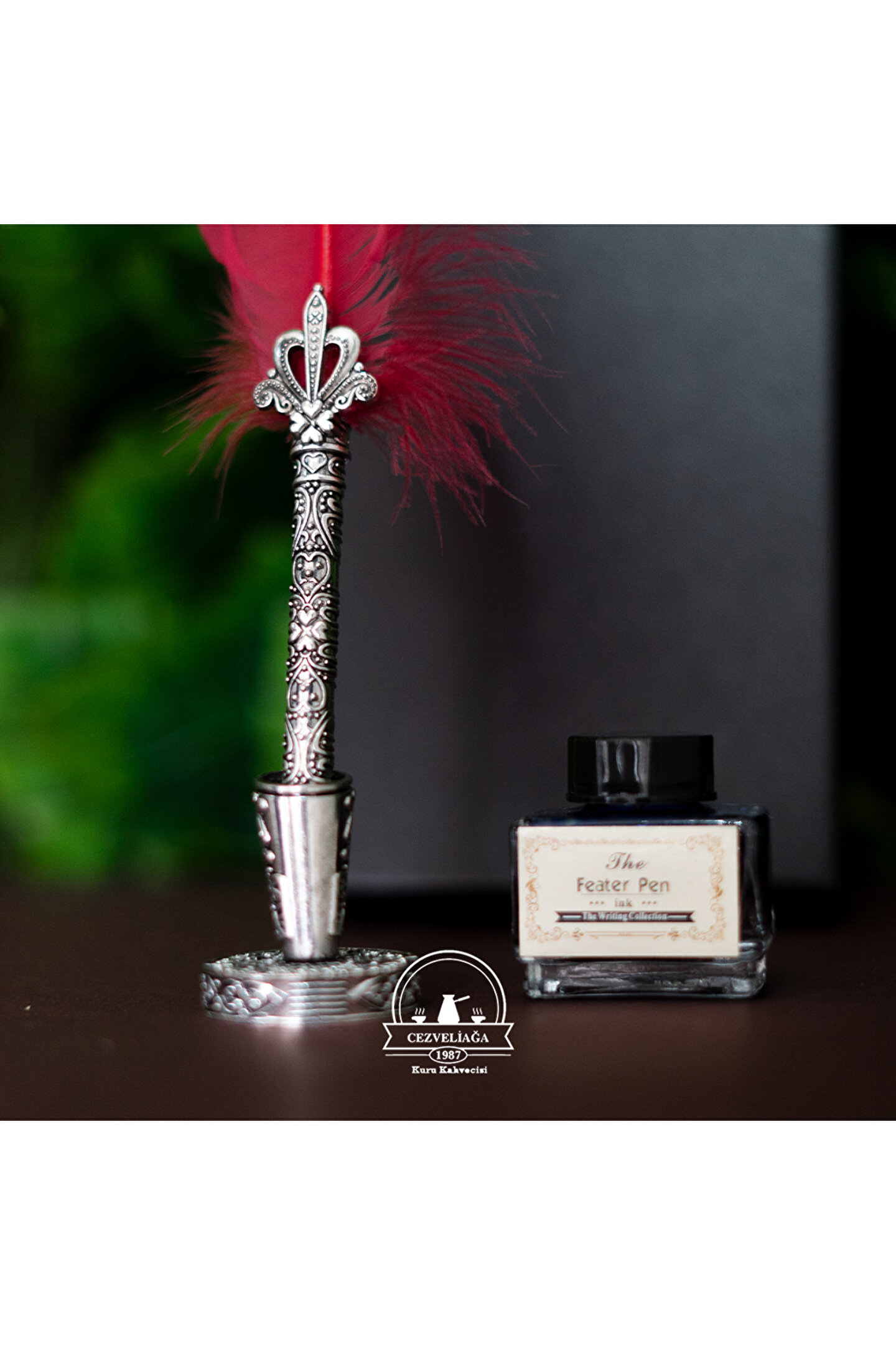 Masa Üstü Tüylü Divit Kalem Ve Mürekkep Seti ; Ürün Özellikleri: Divit kalem ucu metal tasarımlıdır , uç kısmı tüylüdür . ; Set içerisinde divit kalem mürekkebi yer almaktadır. ; Set içerisinde 5 farklı yazış başlğı vardır. ; Set içerisinde divit kalem için masa üstü tutacağı aparatı yer almaktadır. ; Divit kalem seti özel tasarımlı hediyelik kutusunda gönderilmektedir. ; Paket İçeriği: 1 adet tüylü divit kalem 1 şişe divit mürekkebi 1 adet tasarım kutu ;
