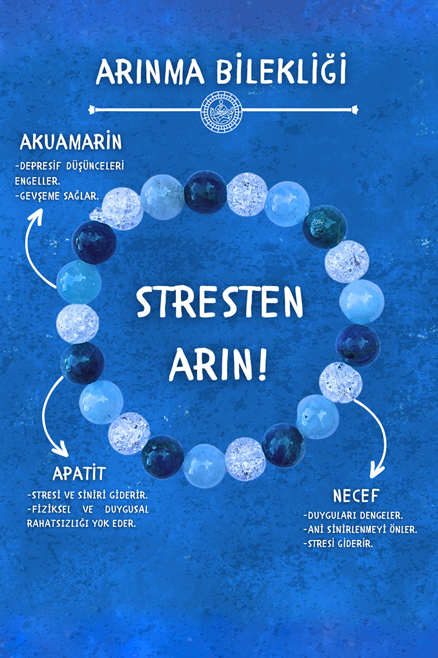 Chi-Zen Doğal Taş Arınma Tılsım Bilekliği Enerji Akışına Uygun Şekilde Bioenerji Uzmanlarımız Tarafından Özel Olarak Özenle Tasarlanmıştır. Kullanılan Taşlar Hitap Ettiği Çakralardaki Tıkanıkların Açılmasında Etkili Olduğu Ulusal ve Uluslararası Literatürlerce İspatlanmıştır ; Doğal Taşların Mistik Enerjisiyle Uyum ve Ahenk İçinde Tasarlanmış Olan Arınma Bilekliğinde Kullanılan Akuamarin, Necef ve Apatit Doğal Taşlarının Başlıca Özellikleri; ; Özgüven, denge ve cesaret oluşturur. ; Kan dolaşım sistemi için yararlıdır. ; Utangaçlığı sıkılganlığı yenmede yardım eder ; Negatif Enerjiyi yok ederek sukünet sağlar. ; Vücuda huzur ve metanet verir. ; İletişim yeteneğini geliştirir. ;