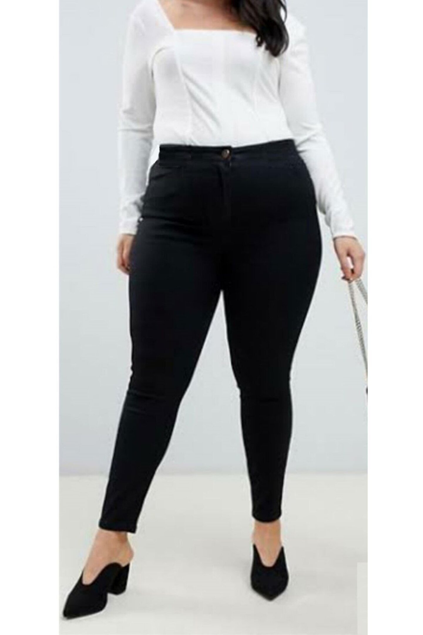 Büyük Beden Kadın Kot Pantolon Siyah ,yüksek Bel Dar Paça Skınny Kalıp Toparlayıcı Özellik Likra