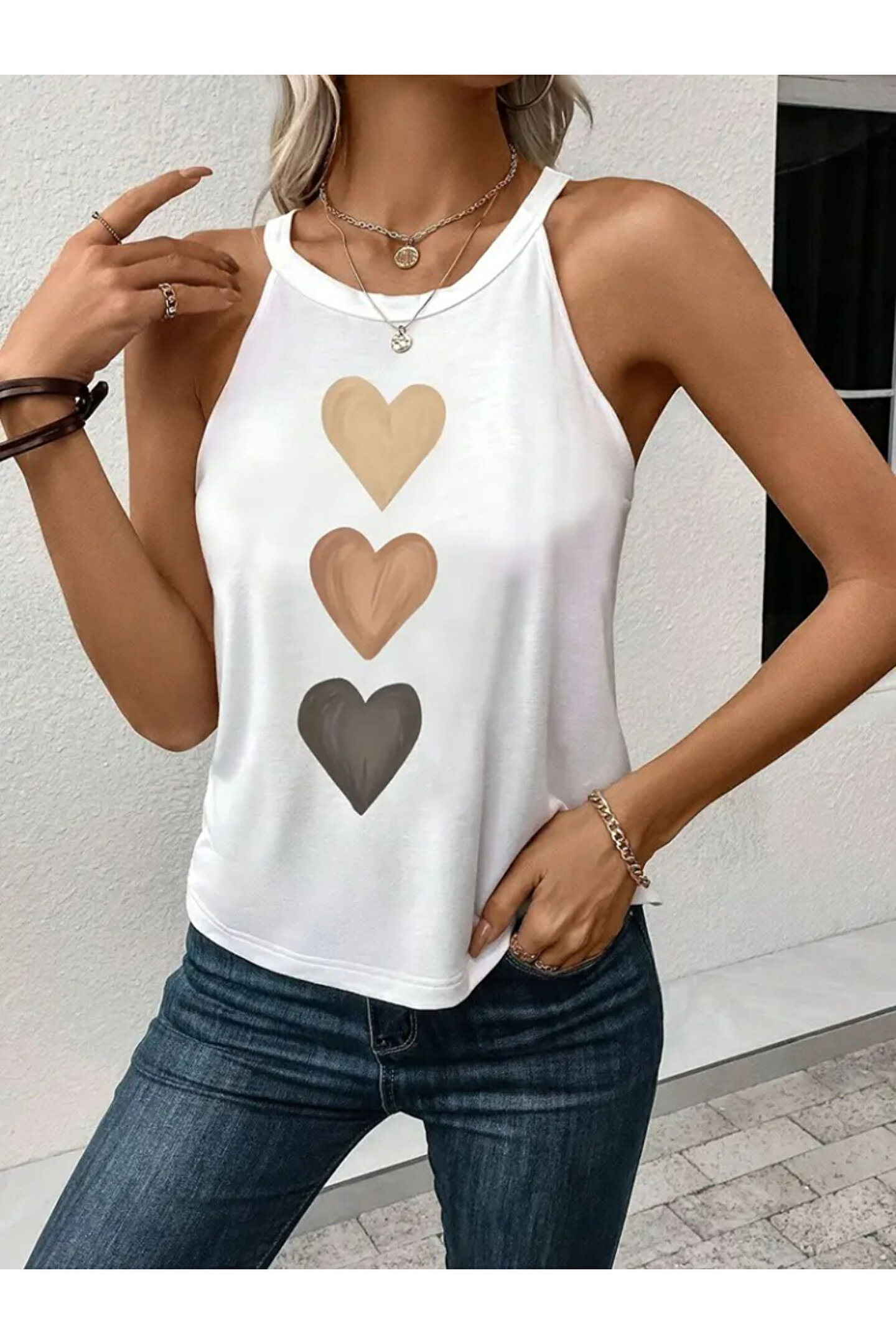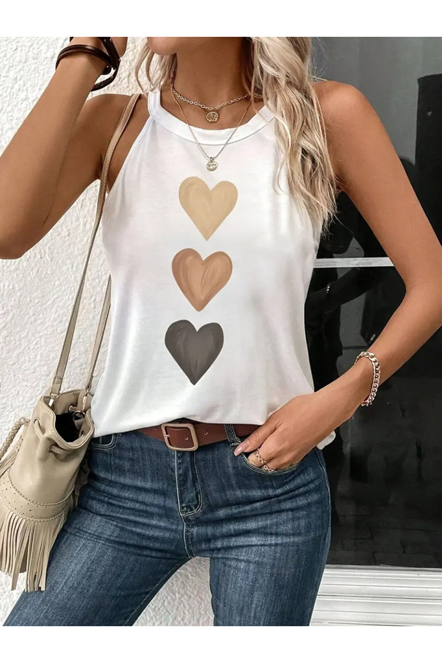 Kadın Omuzlardan Açık Boyundan Askılı Kalp Baskılı Viskon Bluz