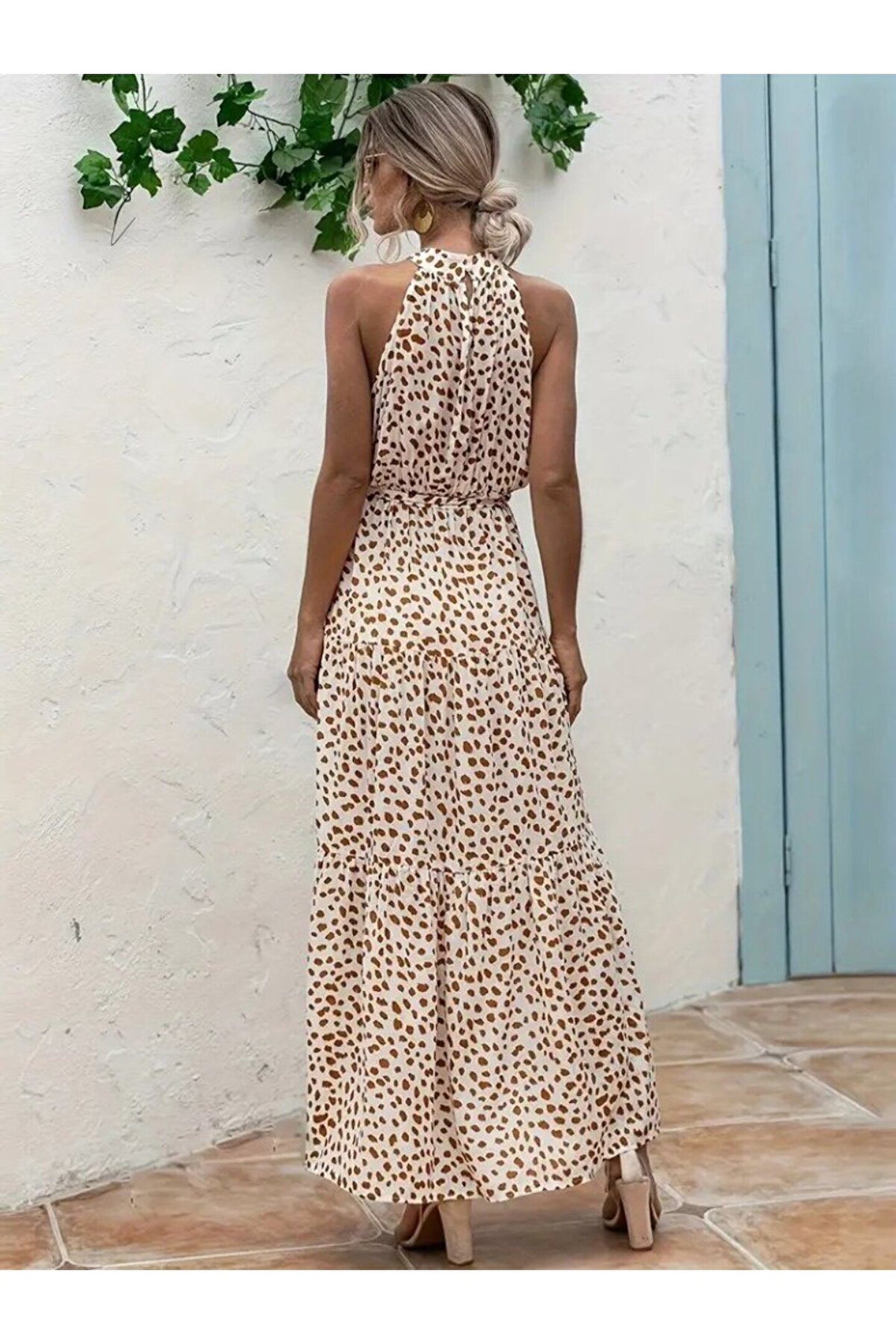 Kadın Daire Yakalı Beli Lastikli Desenli Süprem Elbise