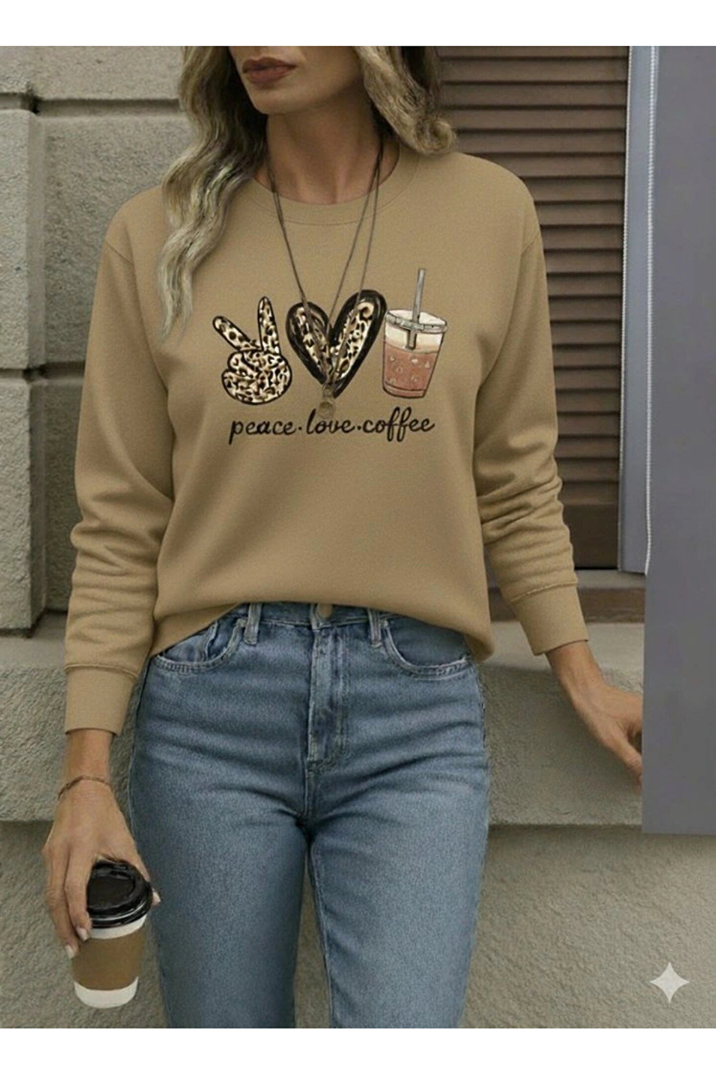 COjans Kadın Uzun Kollu Bisiklet Yaka Kalp Desenli Viskon Iki Iplik Bluz