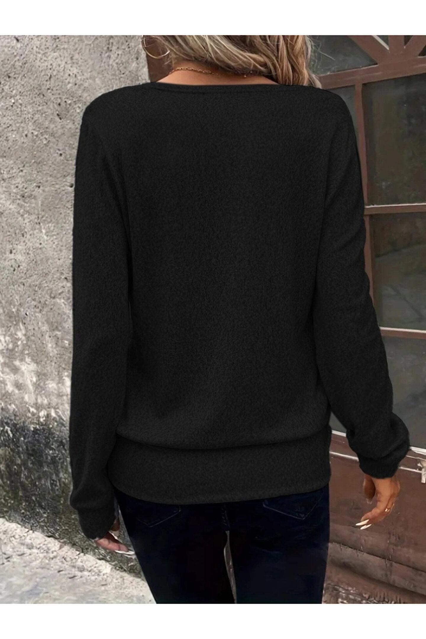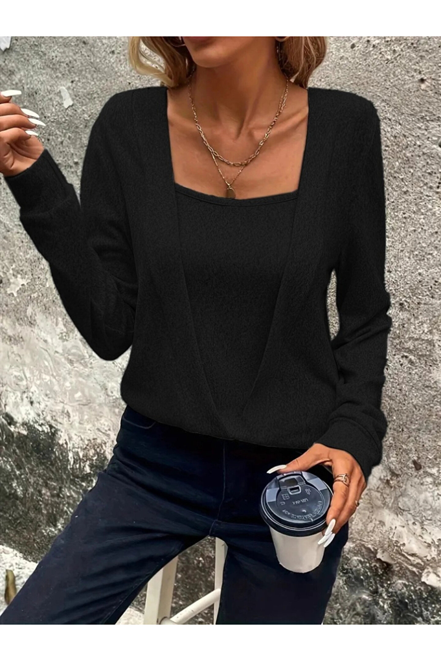 Kadın Uzun Kollu Kruvaze Yaka Kol Ve Etek Ucu Manşet Detay Yumoş Bluz