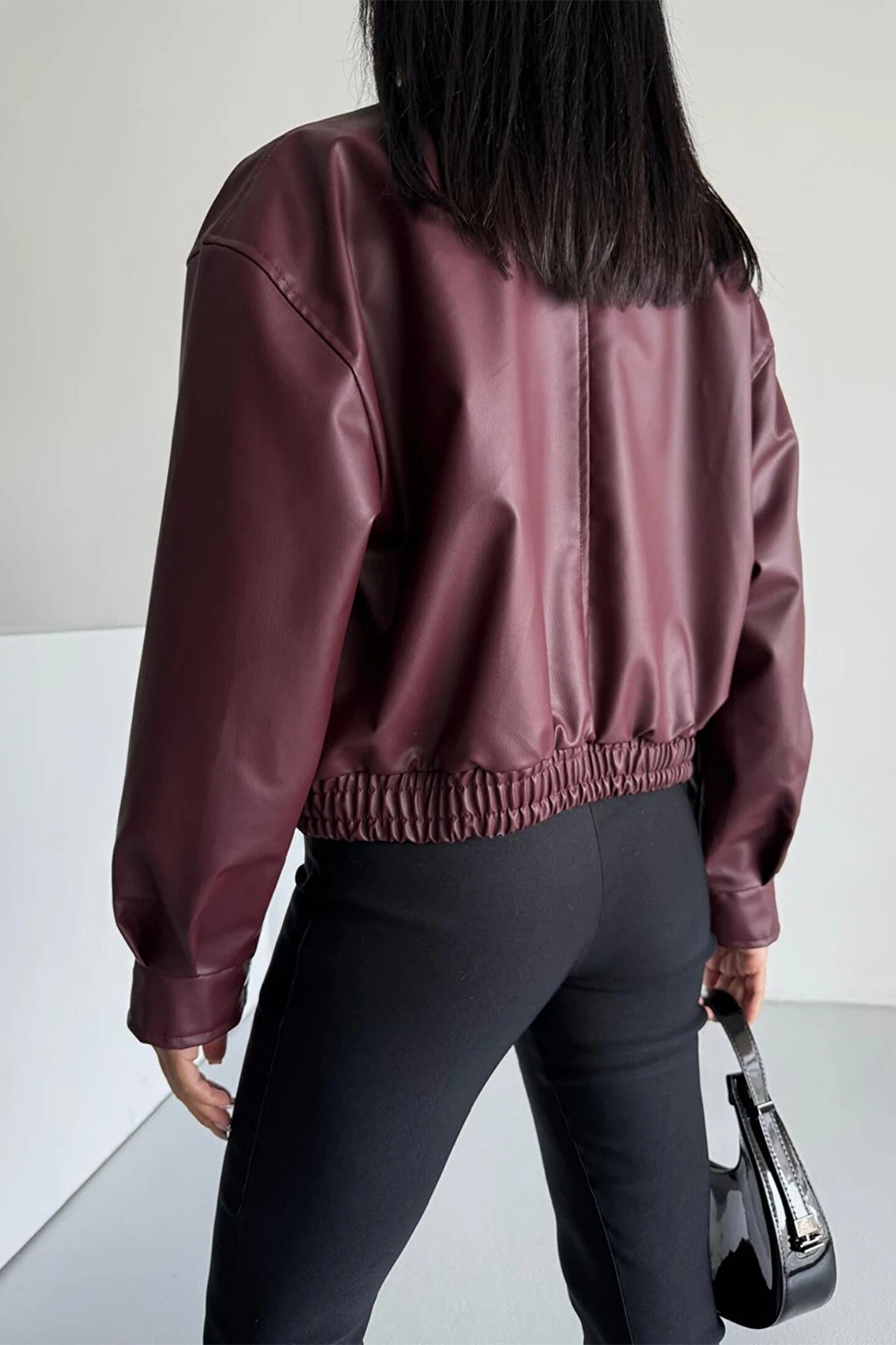 COJIKO Kadın Bomber Beli Lastikli Deri Ceket