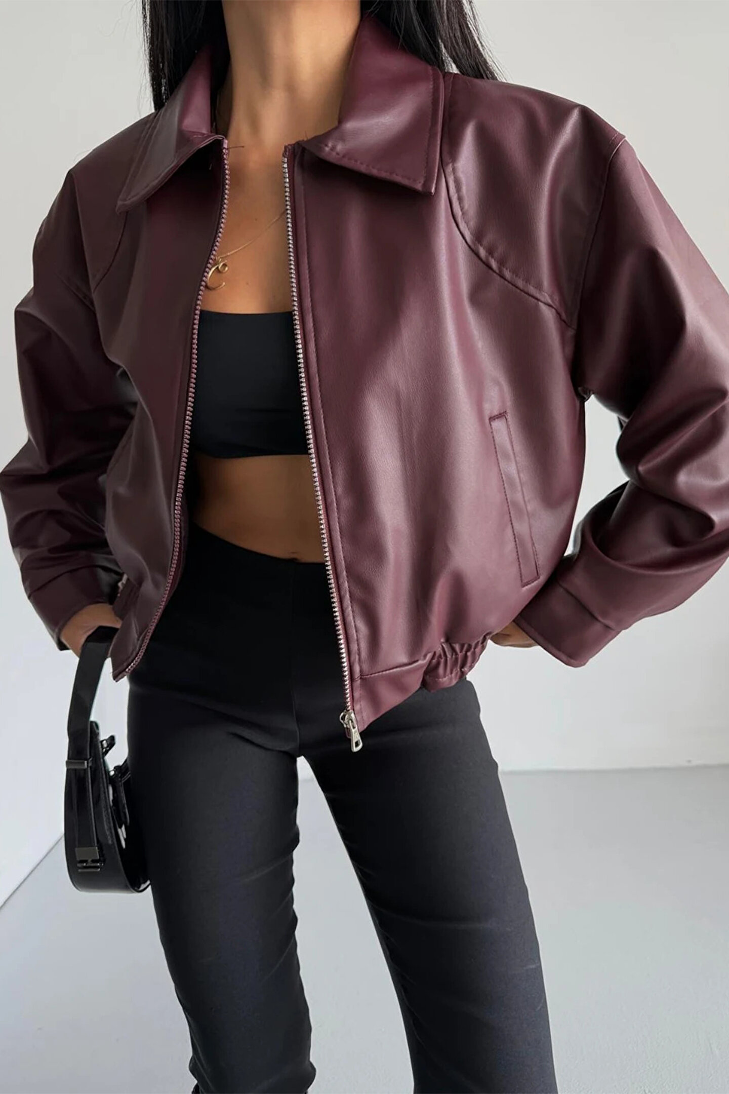 COJIKO Kadın Bomber Beli Lastikli Deri Ceket