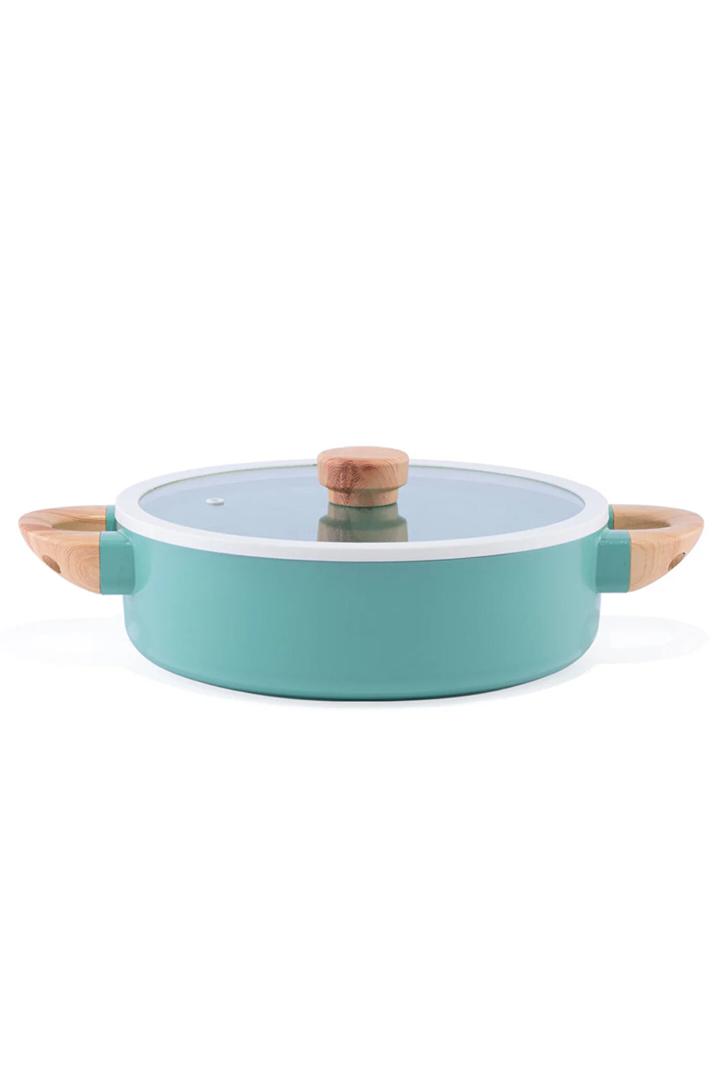 Canlı rengi, parlak dokusu ve yüksek performanslı yapısıyla Linda Tencere Serisi, mutfakta hem şıklığı hem sağlıklı pişirme deneyimini bir araya getiriyor.Dayanıklı alüminyum döküm gövdesi, ısıyı eşit dağıtarak yemeklerin içten dışa dengeli pişmesini sağlarken; doğal seramik kaplaması sayesinde daha az yağ ile yapışmadan pişirme imkânı sunar. Ahşap görünümlü bakalit sapları, modern görünümün yanında güvenli ve konforlu tutuş sağlar. Şeffaf cam kapakları sayesinde pişirme sürecini kolayca kontrol edebilirsiniz.