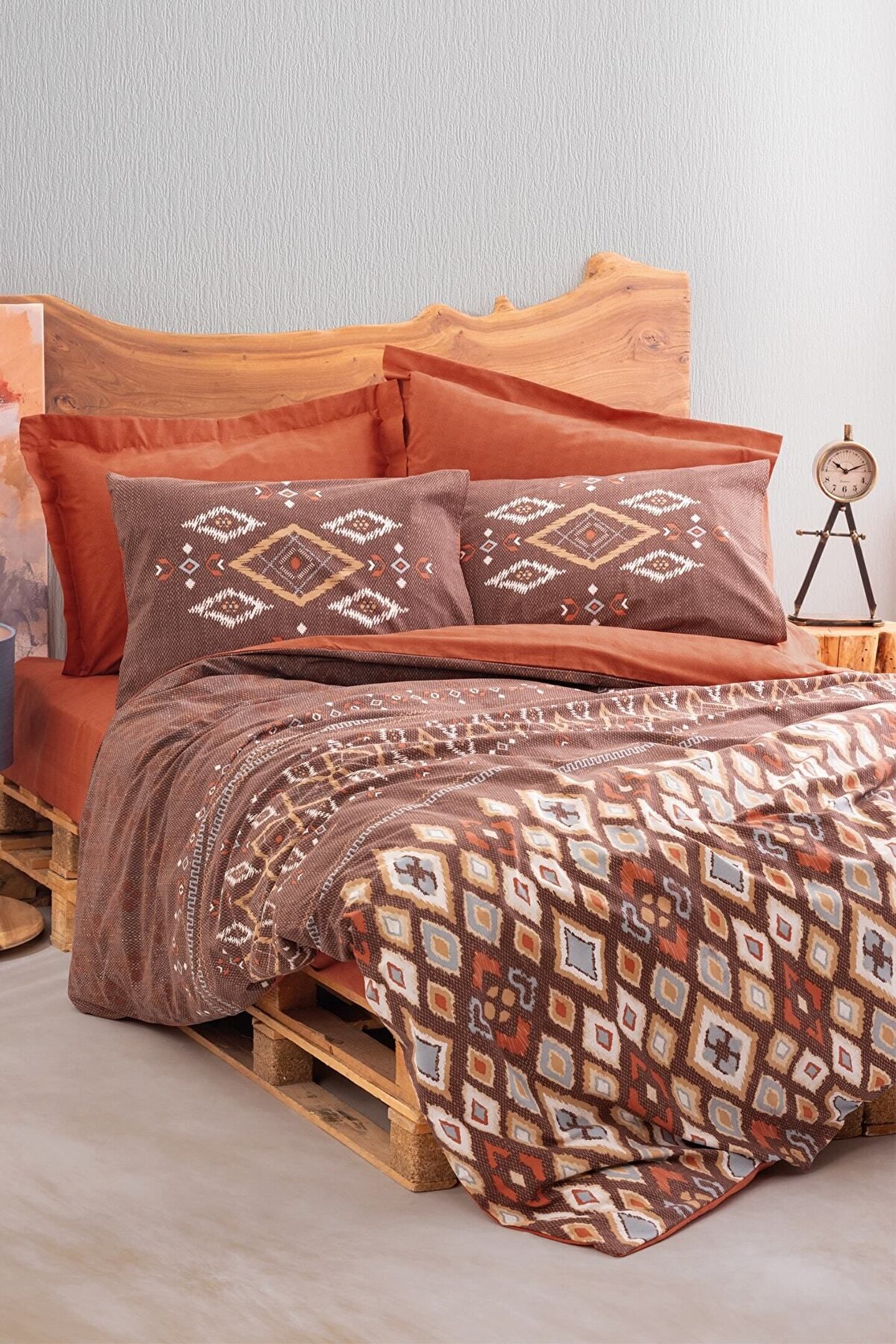 Ethnic Çift Kişilik Nevresim Takımı Belize Kahve