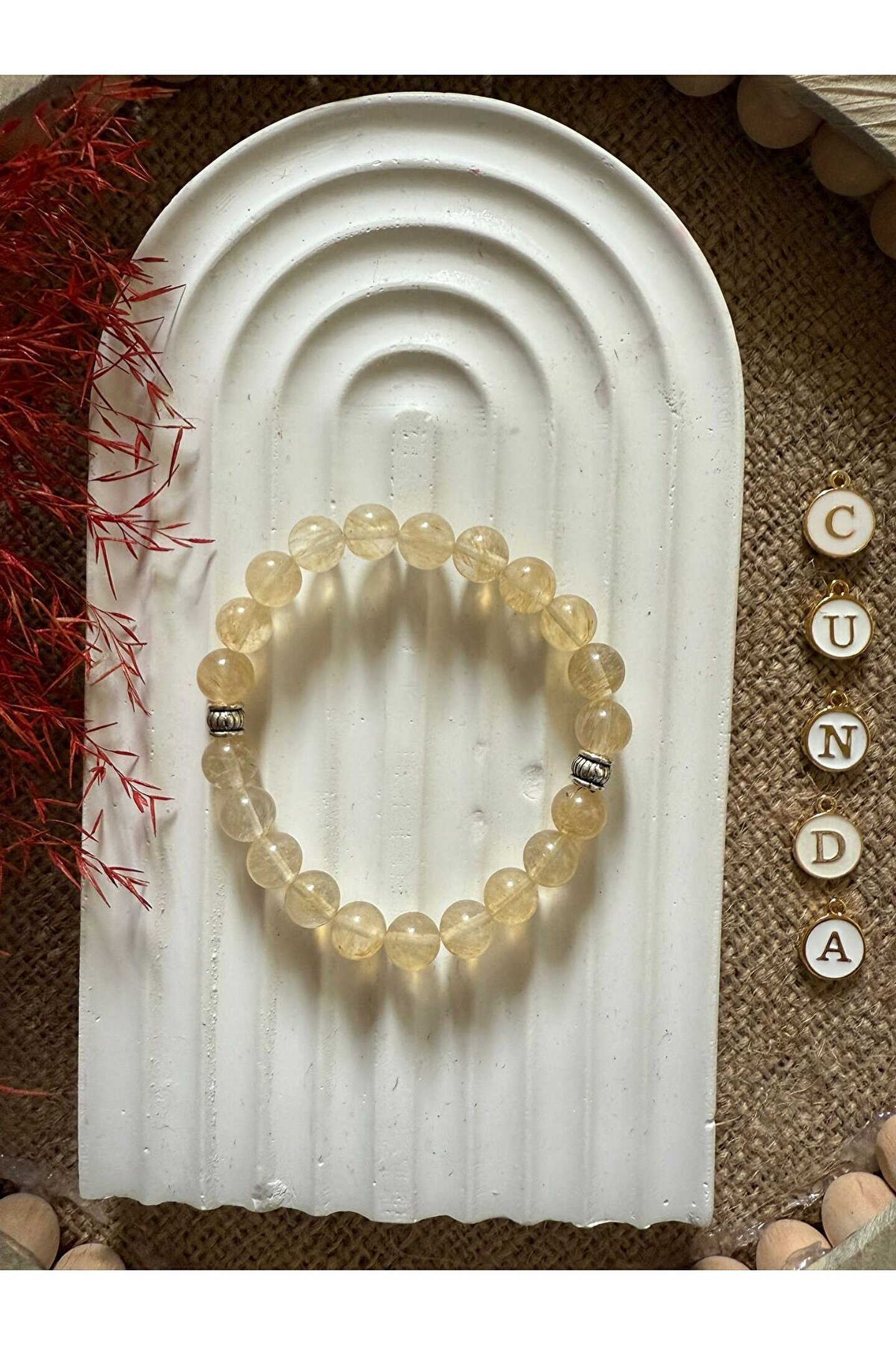 - Sitrin taşı, bolluk, bereket ve kariyerde başarı getirdiğine inanılan doğal bir taştır.; - Oval kesim sitrin taş, zarif ve modern bir görünüm sunar.; - Bilekliğin materyali, doğal taş kullanımı sayesinde hem şık hem de dayanıklıdır.; - Bakımı kolaydır; nemli bir bezle silerek temizleyebilirsiniz.; - Türkiye menşeli olup, yerel üretimle desteklenmektedir.; - Kadın ve kızlar için ideal bir aksesuar seçeneği olup, genç yaş grubuna hitap eder.;