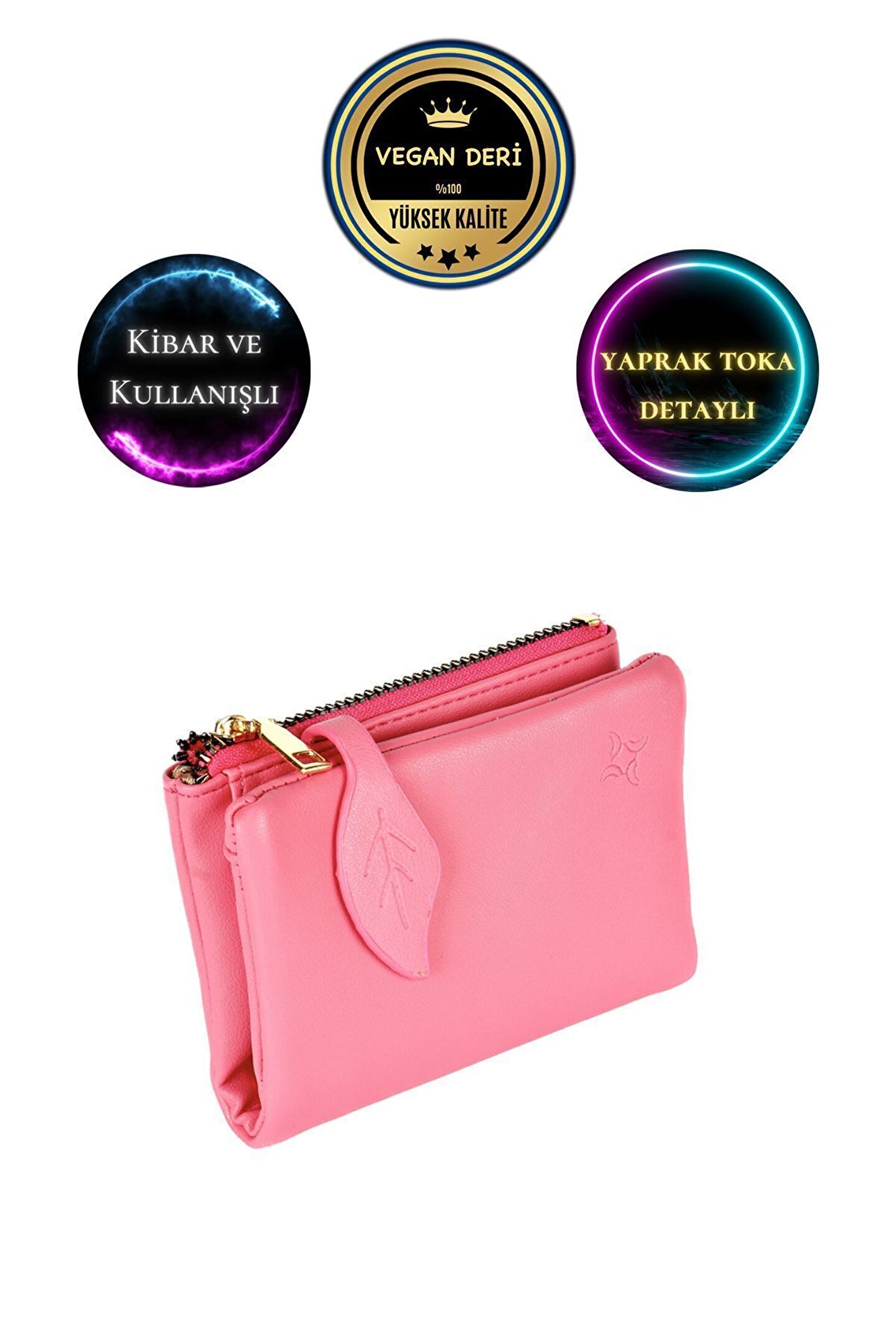 Fuşya Yaprak Tokalı Kibar Model Kadın Cüzdan