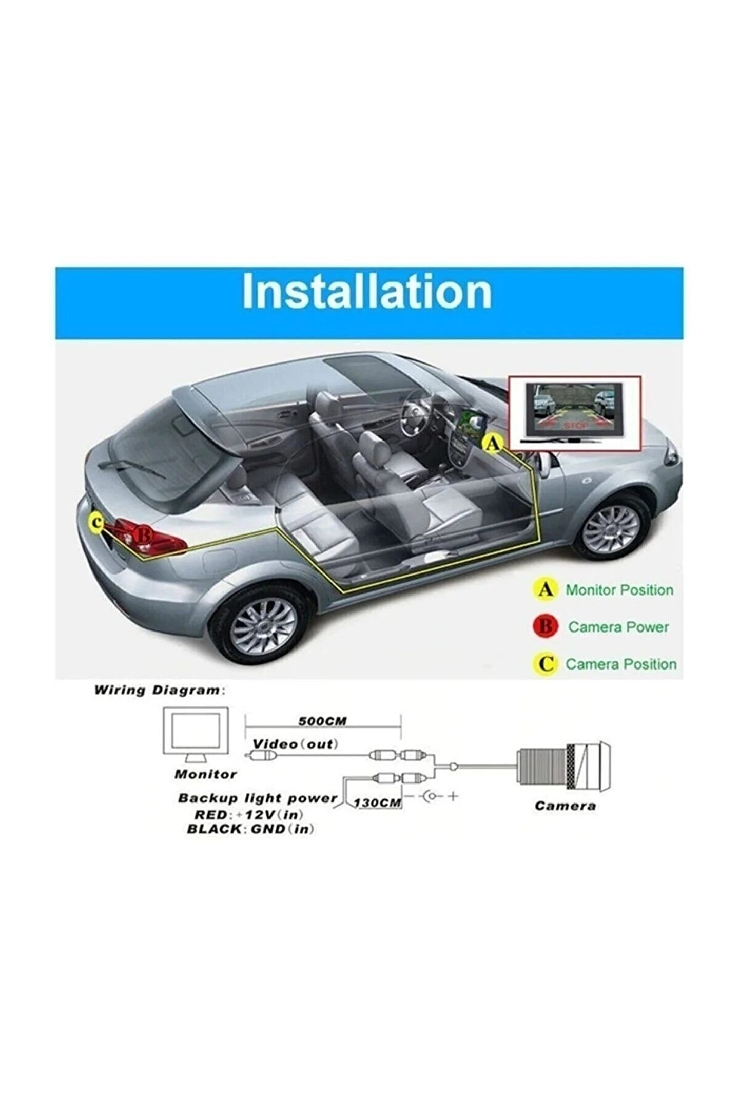 Araba geri görüş kamerası 8 ır ledli gece görüşlü çift aparatlı mesafe çizgili Tüm araba marka ve modellerine uygundur. Kurulumu çok basittir. ; Yüksek çözünürlüklü kristal 170 derecelik geniş açı lens ; Buğu tutmaz cam ; Pal görüntü sistemi ; Su geçirmezlik: Ip66 ; Renk: Siyah ; Video çıkışı: 1.0vpp, 75 ohm ; Güç: Dc 12v ; Paket içeriği:Park kamerası , 5m av kablosu , 1.5m güç kablosu , matkap ucu , kelebek aparatı ;