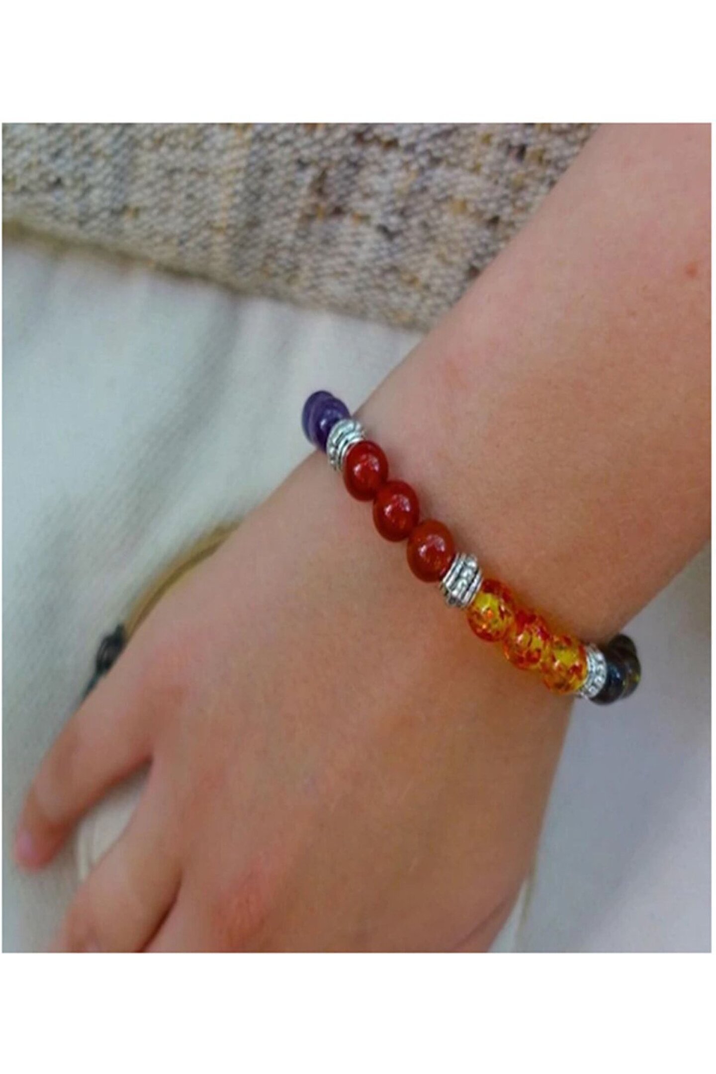 Yedi farklı çakra taşı içeren bu bileklik, enerji dengesi ve şifa için ideal bir aksesuardır; Doğal taş materyali ile hem estetik hem de doğallık sunar, her kıyafetle uyum sağlar; Her bir bileklik parçası, benzersiz ve özgün bir tasarım anlayışını yansıtırken, kişisel tarzınıza zarif bir dokunuş katar; Çeşitli renk ve desenlerdeki taşlar, bilekliğin her parçasında farklı bir enerji ve görünüm sunar;