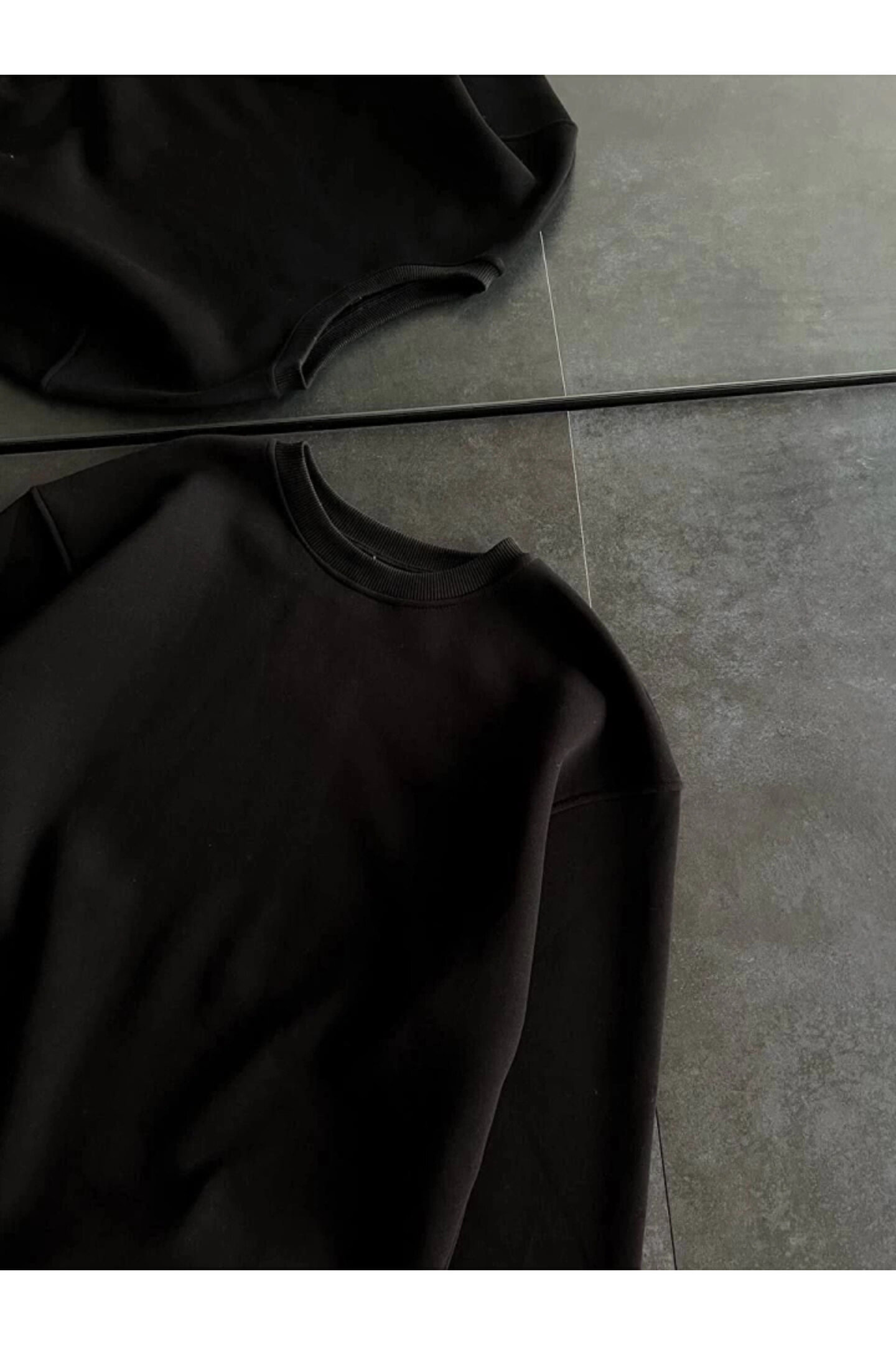 Kışlık Bisiklet Yaka Üç İplik Basic SweatShirt - Siyah