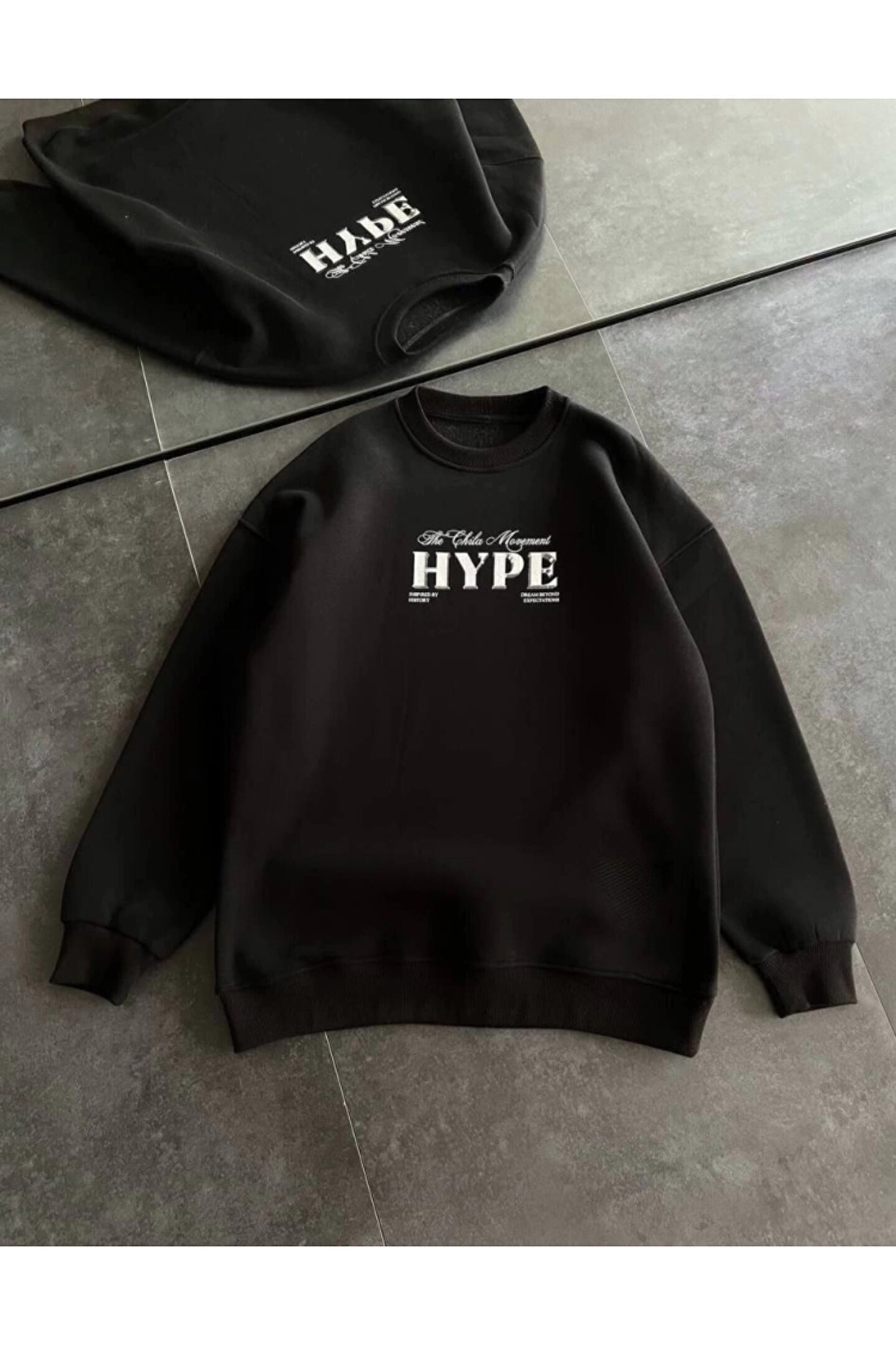 DEAG MDB Üç İplik Bisiklet Yaka Baskılı weathirt iyah