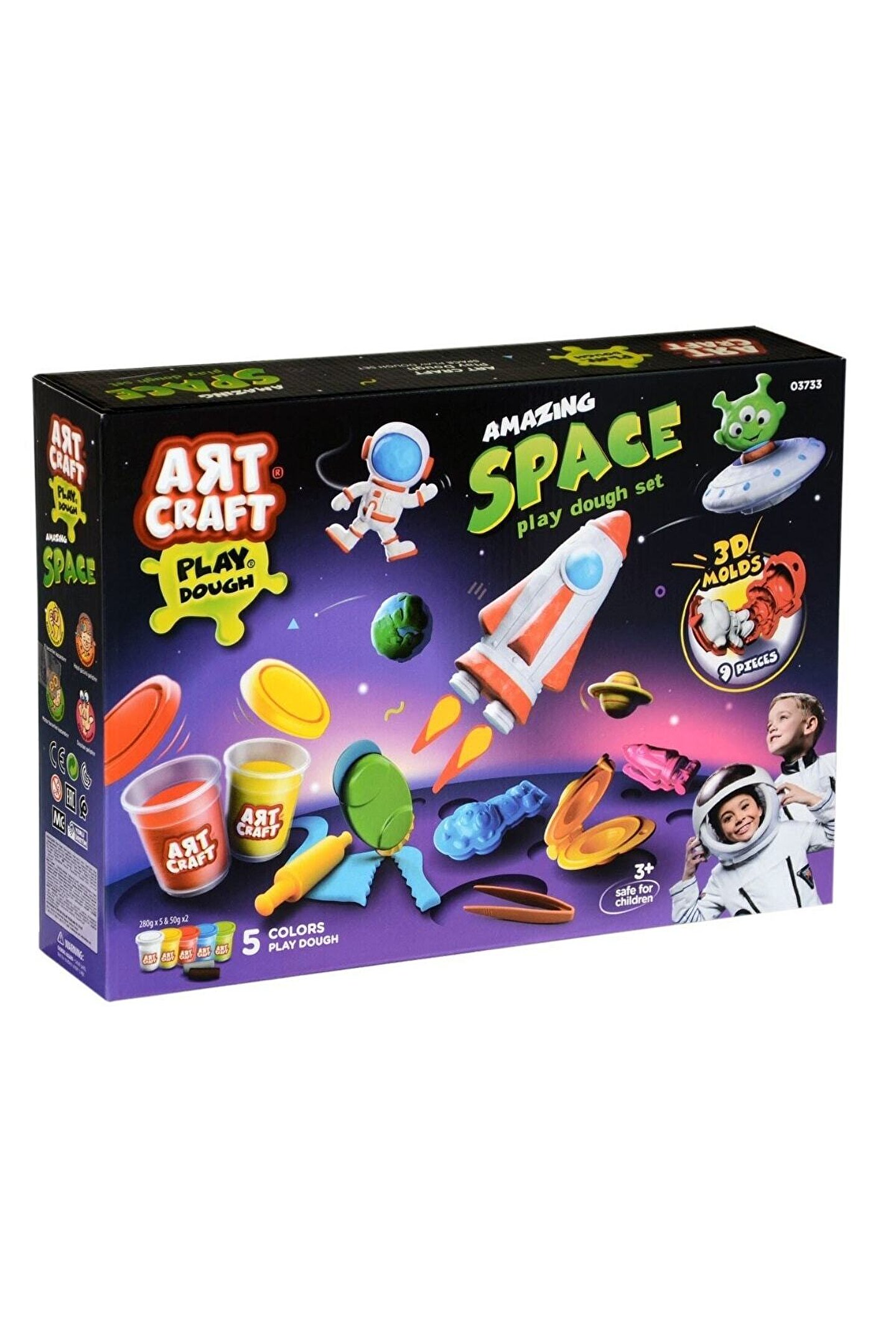 Art Craft Oyun Hamuru Hey! Uzaya gidiyoruz! Yolculuk başlasın… Bu yolculukta, bu uzay seti seninle. Rengarenk oyun hamurları ile 3 boyutlu kalıpları kullan ve uzayı keşfedelim! Çocuklar bu oyuncak ile, el ve motor becerileri kazanacak. Hayal güçlerini ve duyularını geliştirecekler. Ürün; 5 farklı renk oyun hamuru ve 3 boyutlu kalıplarında yer aldığı 9 parçadan oluşmaktadır. 3 yaş altı çocuklar için uygun değildir. Sağlık testlerinden geçmiştir. Yerli üretimdir. Çocuklar için güvenlidir. El becerisi kazandırır. Hayal gücünü geliştirir. Motor becerileri kazandırır. Duyuları geliştirir. Kutu Boyutu:37x7,5x26 cm 8693830037333