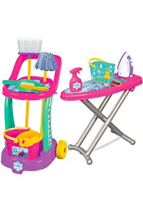 Frozen Oyuncak Temizlik Arabası ve Karlar Ülkesi Oyuncak Ütü Masası Eğitici Oyuncak Set Depomiks