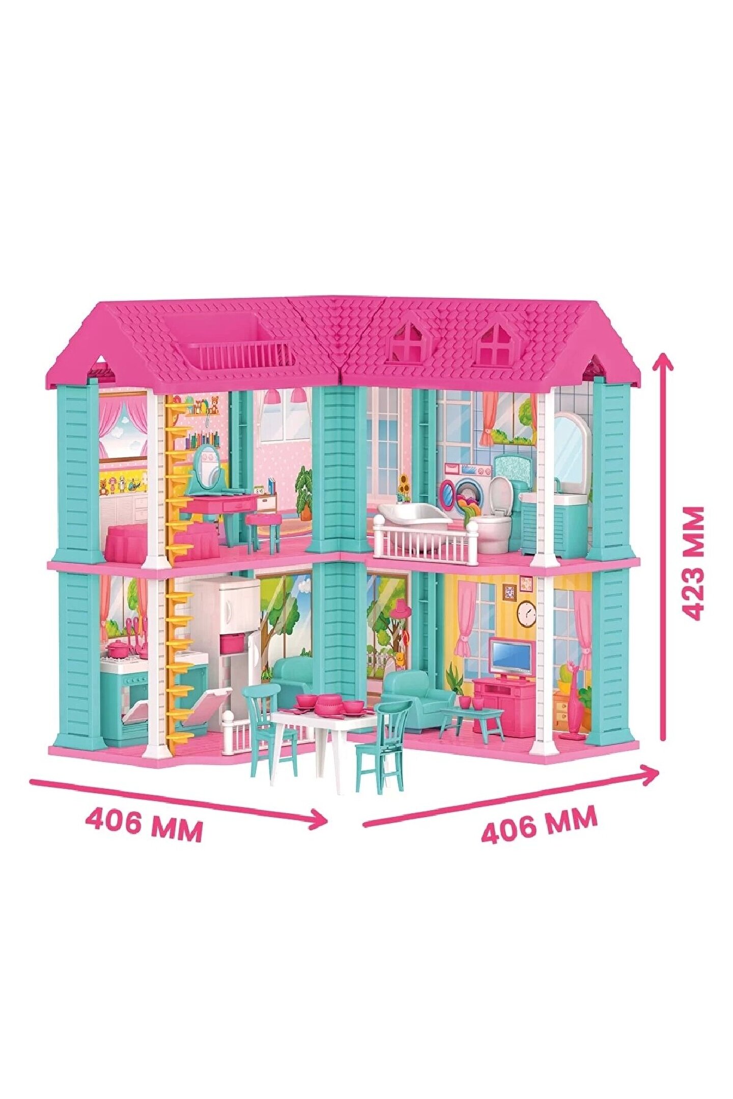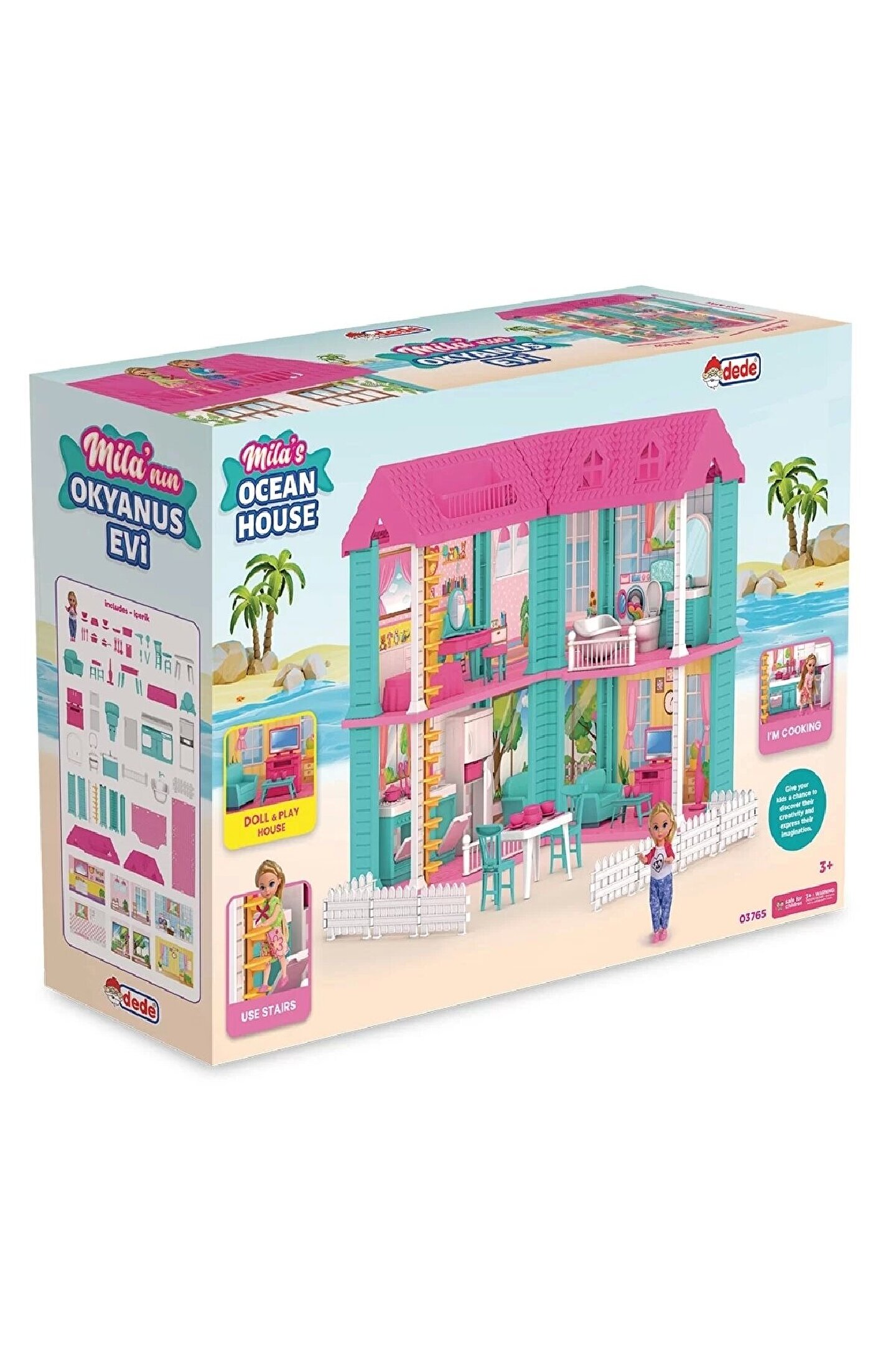 • Mila’nın Okyanus Evi!• Bu ev 2 katlı! Ama birçok bölüme sahip.• Güzel yemekler yapabilmek için, alt katta mutfak ve keyif yapmak için salon mevcut.• Üst katta, yatak odası ve banyo!• Üst kata çıkmak için, merdivenleri kullanabilirsin!• Bu ürün çocuklara, yaratıcılıklarını geliştirme ve hayal güçlerini ifade etme şansı verir.• Ürün ölçüleri; 406*423*406 mm’dir.• Ürün; 3 yaş altı çocuklar için uygun değildir.• Bebek ürüne dahildir.• Sağlık testlerinden geçmiştir.• Yerli üretimdir.