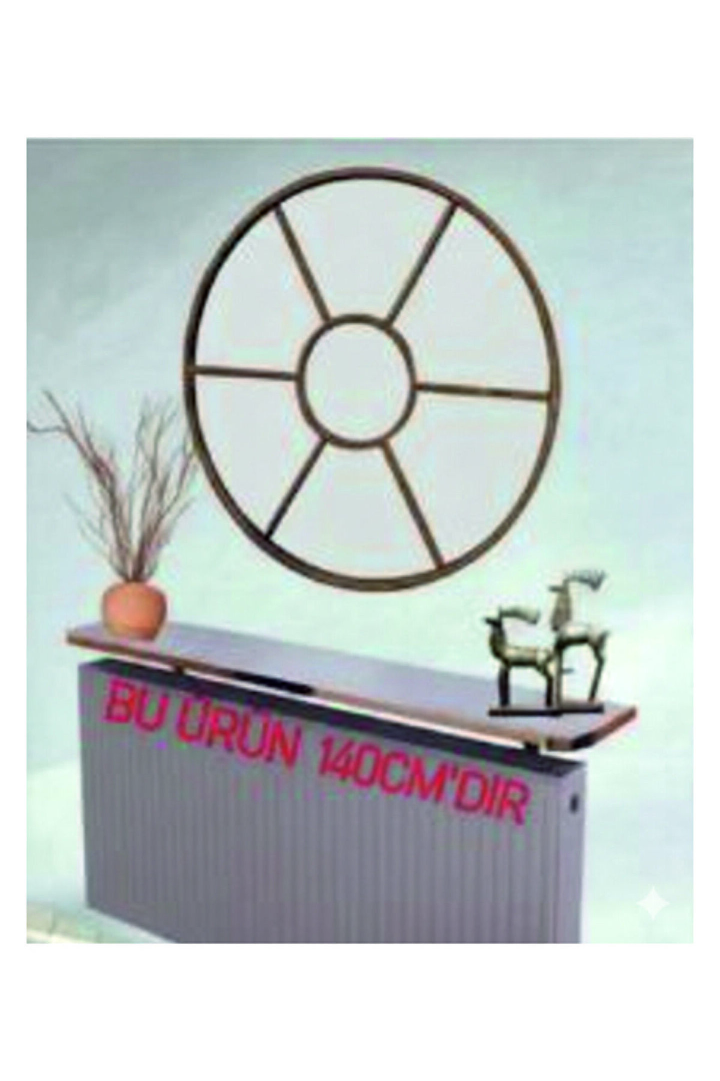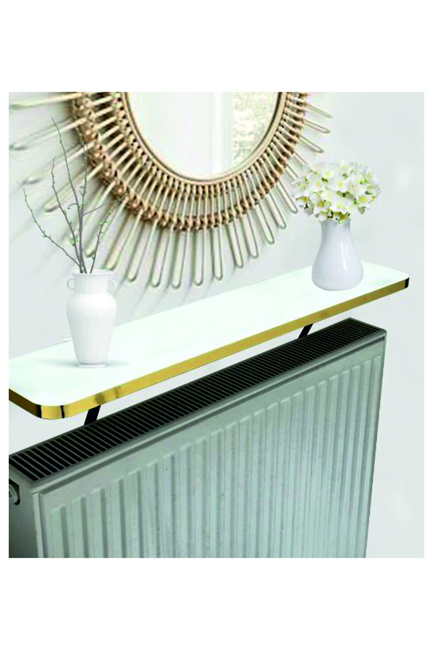 - Retro tasarımıyla dikkat çeken bu petek üstü raf, mekanınıza nostaljik bir hava katıyor.; - 140 cm genişliğindeki geniş yüzeyi ile çoklu eşyalarınızı düzenli bir şekilde sergilemenize olanak tanır.; - 18 cm derinliği sayesinde kalorifer peteğinizin üzerine kolayca monte edilebilir ve sağlam bir kullanım sunar.; - Suntalam malzemesiyle dayanıklılık ve uzun ömürlülük vaat ederken, beyaz rengi ile her türlü dekorasyonla uyum sağlar.; - Gold detaylarıyla şık bir görünüm kazandırarak evinizdeki estetik çizgiye katkıda bulunur.; - Garantisiz olmasına rağmen kaliteli yapısıyla kullanıcıların beklentilerini karşılamayı hedefler.