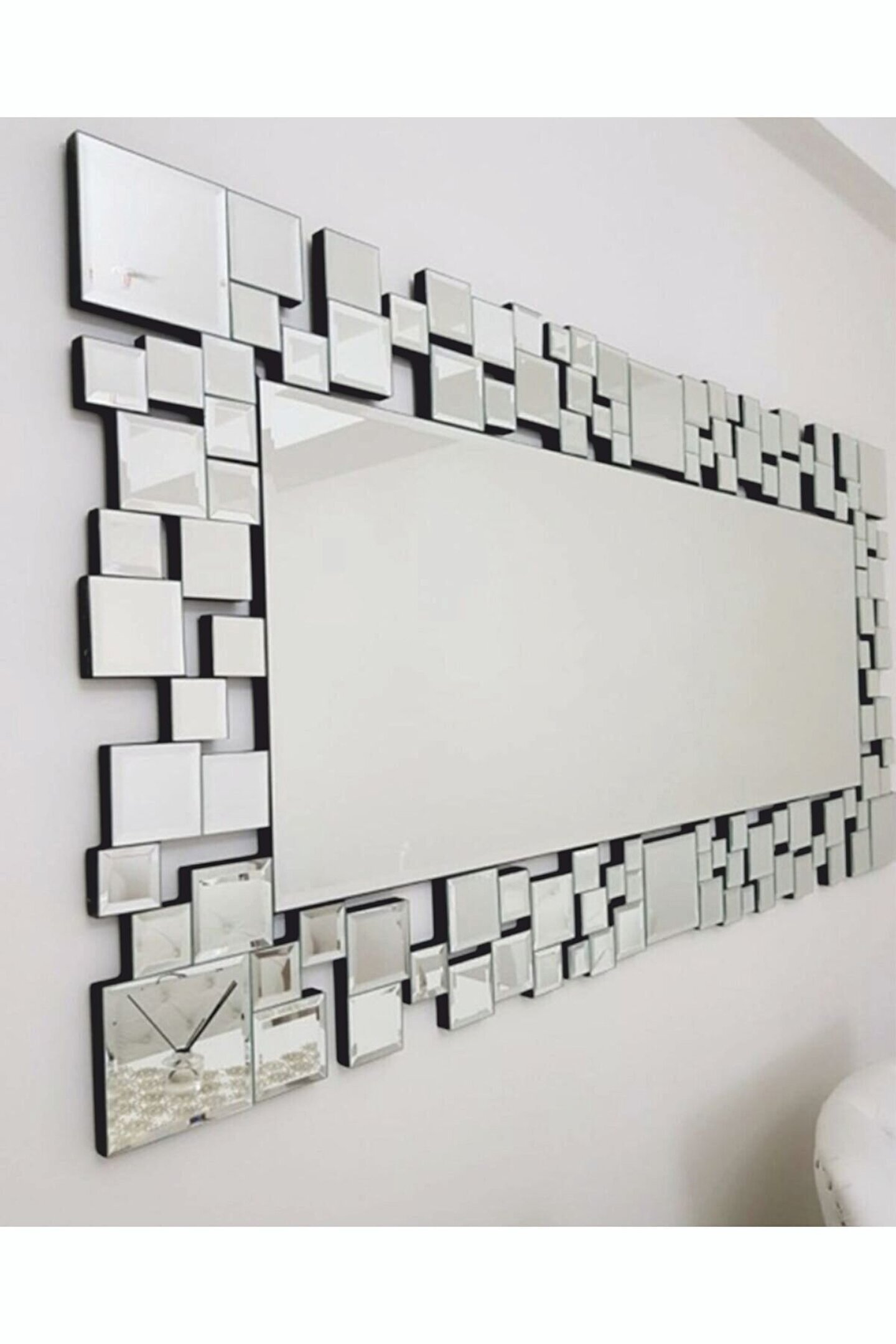 ; Ürün Ölçüleri ; ; uzunluk 160 cm ; ; Genişlik: 80 cm ; ; Kalınlık: 18mm mdf ; ; Ayna: 4 mm flotal ; ; Ürün Özellikleri ; *aynaların kenarlarına bizote işlemi uygulanmıştır Cam veya aynaların kenarlar kısımlarında çerçeve şeklinde yapılan estetik bir işlemdir.Kenarlarda yapılan bu işlem ürüne doygunluk kazandırır ve yıllardır işleme olarak kullanılmakta ve istenmektedir.İstenen derece ve eğimde kenarlara yapılan bu işlemeyle Cama daha estetik bir görünüm kazandırılır. ; 4 mm Flotal Yüksek Kaliteli Gerçek Aynadır. Kesinlikle Çin Malı Akrilik,Pleksi vb. Değildir. ; Temel malzeme, 1. Sınıf mdf ; ; Çerçeve siyah cila uygulanmıştır. ;