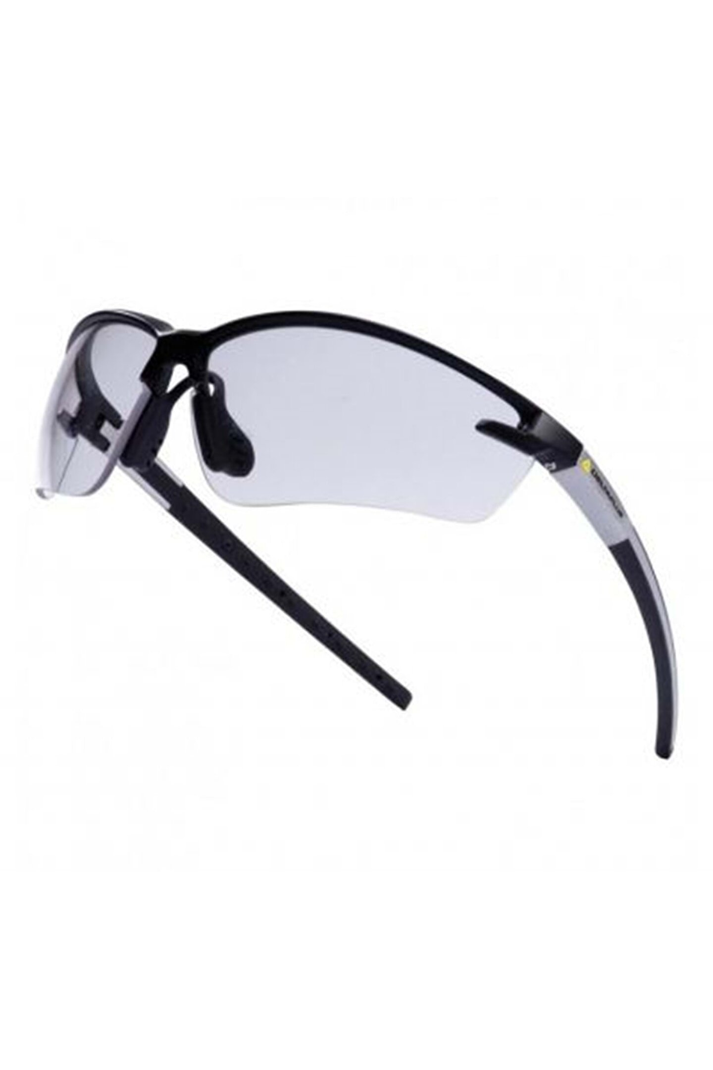 Delta Plus Fuji Clear Şeffaf Gözlük Polikarbonat çift camlı gözlük İki materyalli saplar; Yumu?ak uçlar; Yumu?ak TPE burun pedi; Çerçeve : polycarbonate / nylon Lens : polycarbonate Ağırlık : 29 g Buğulanmaz Çizilmez UV400 Koruması Kaymaz kauçuk saplar Artırılmış konfor Kafada çok iyi tutunma (ya da barette) Yarım çerçeve Görüş rahatsızlığı yok Ekstra esnek TPE burun parçası En iyi konfor Tüm vücut tiplerine tam uyum AM; AS; UV400;