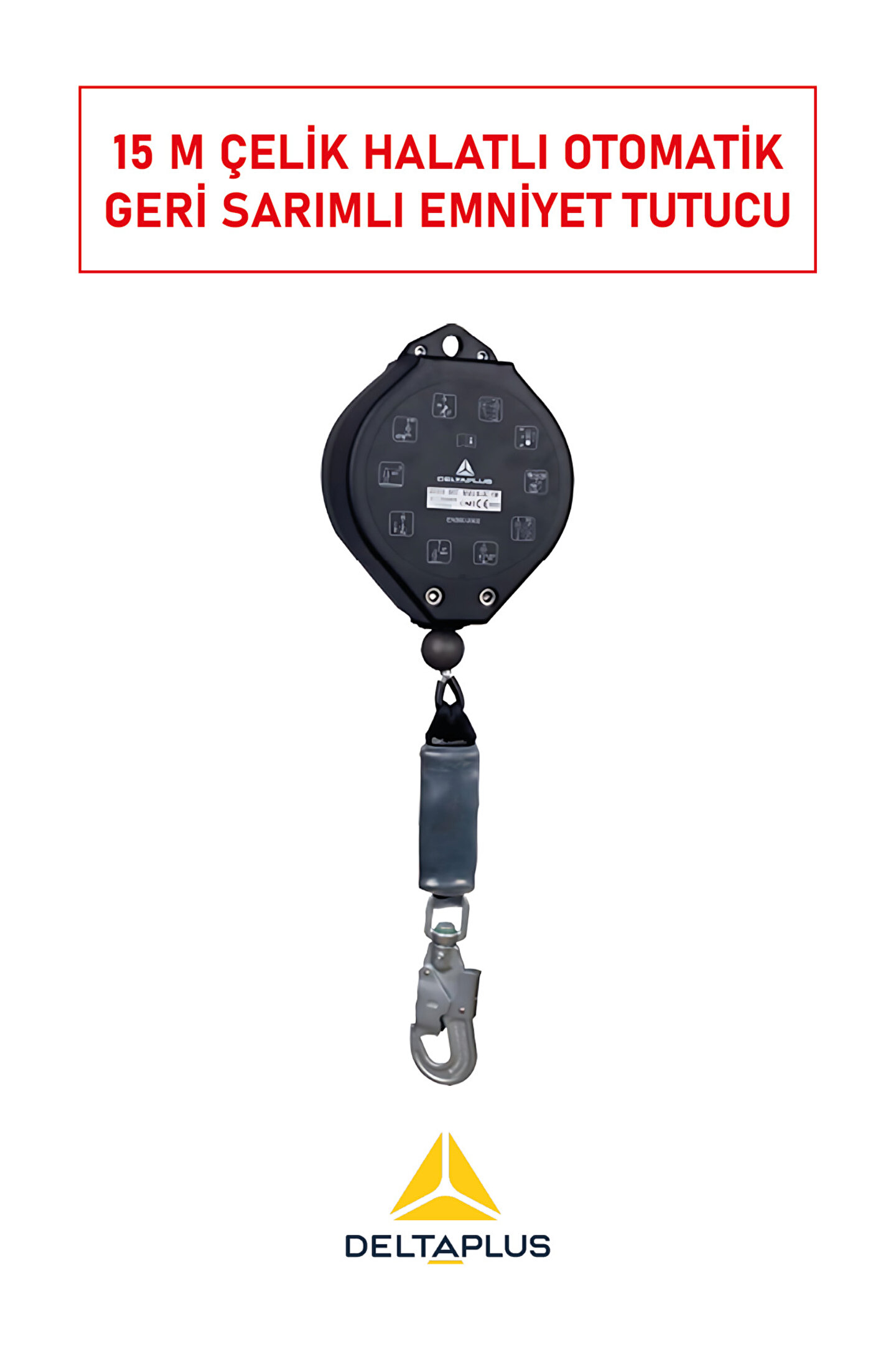 Delta Plus MAXIBLOC serisi, yüksek dayanımlı çelik halatve otomatik geri sarım mekanizmasıyladüşüş anında halat uzunluğunu kilitleyerek güvenli duruş sağlar.