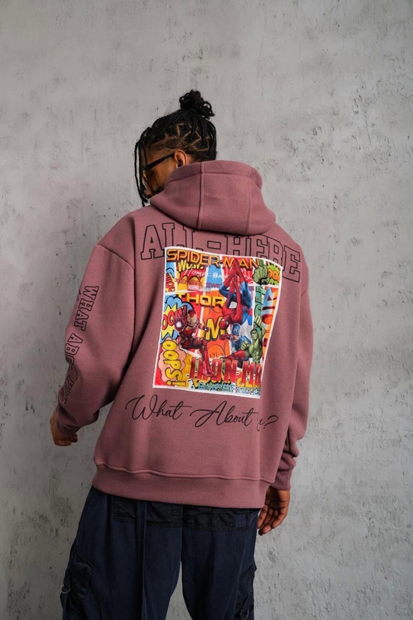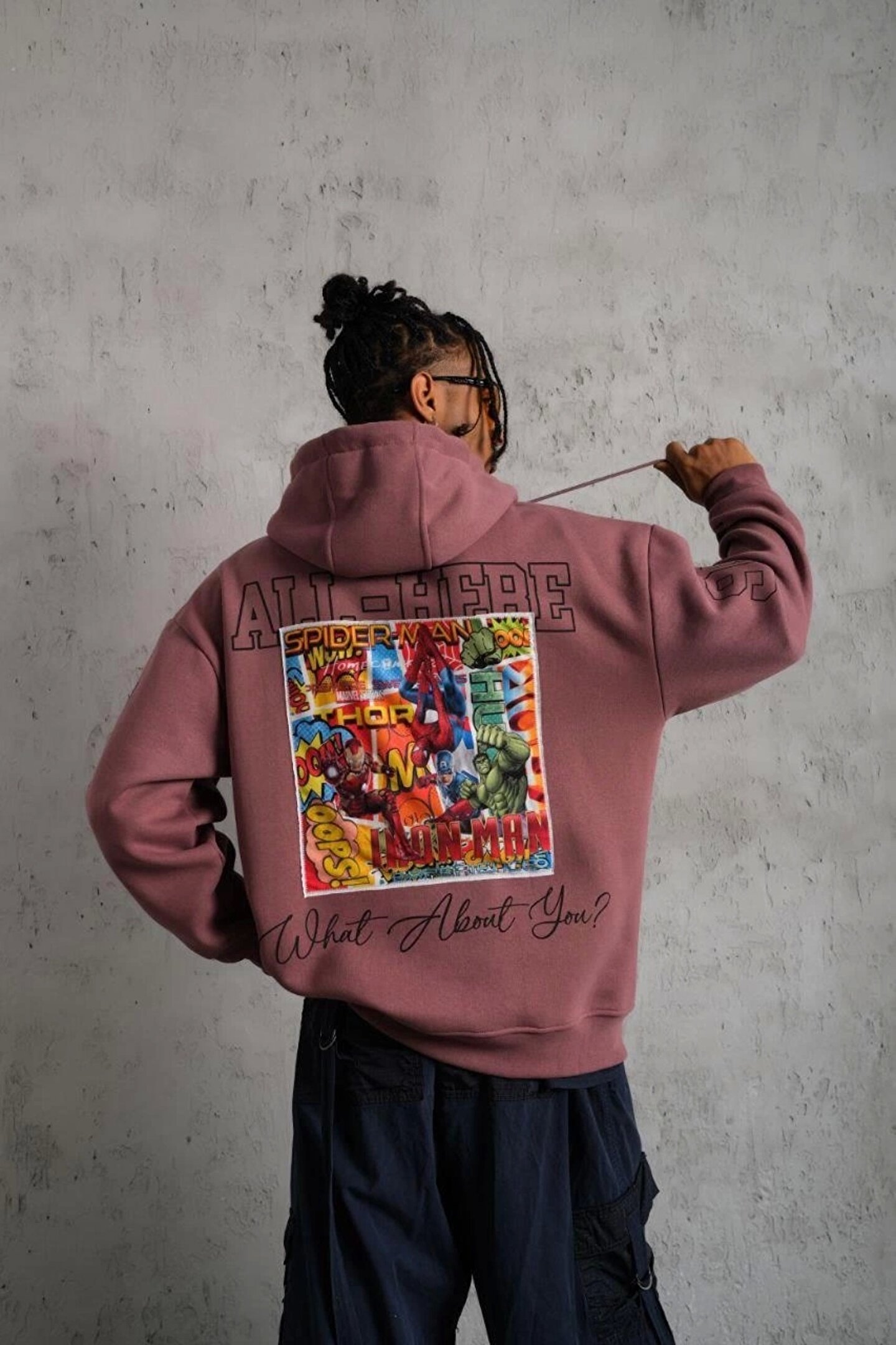 Denzy Erkek 93 Dijital Parça Baskılı Kapşonlu Sweat - Gül Kurusu