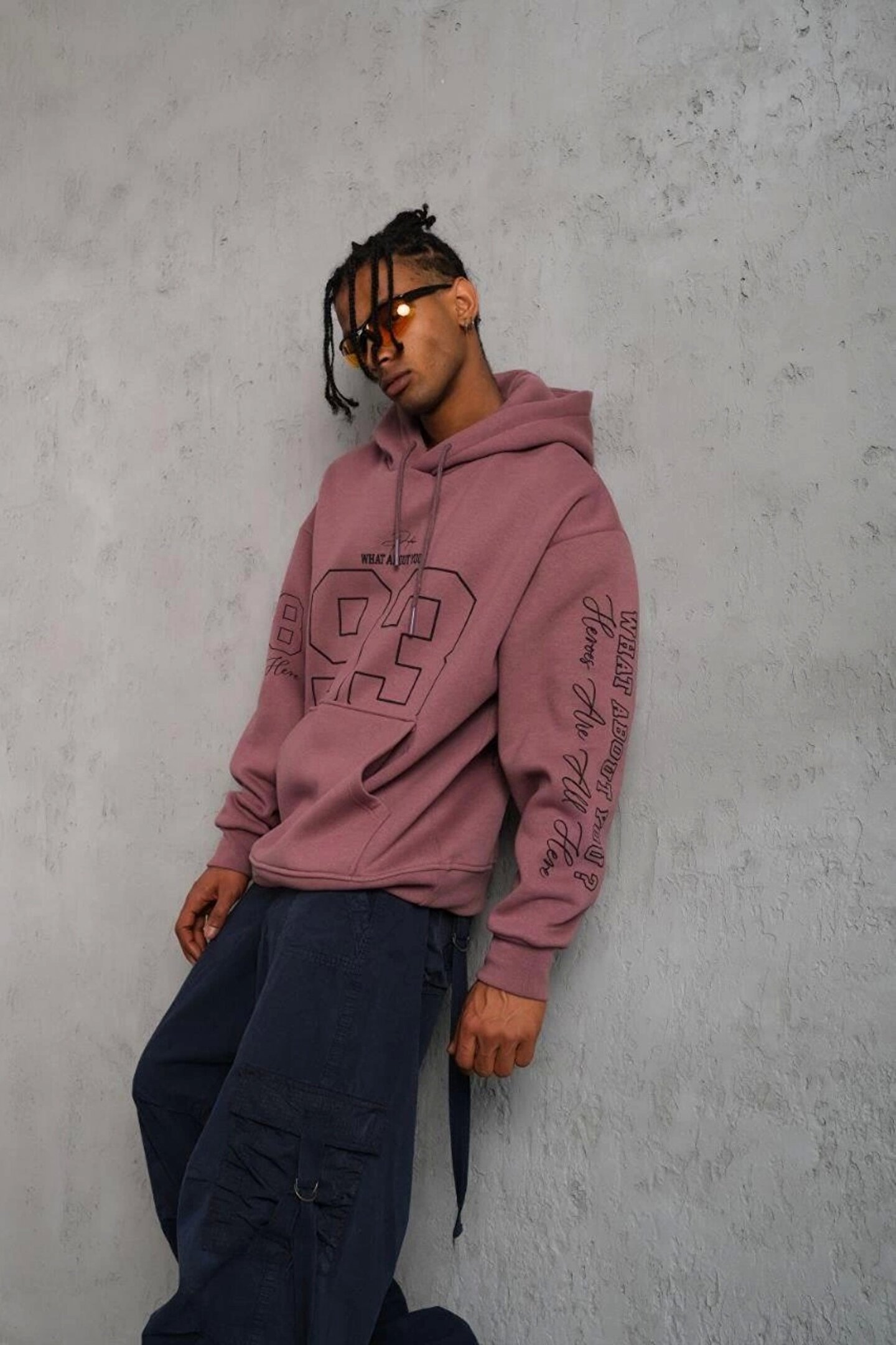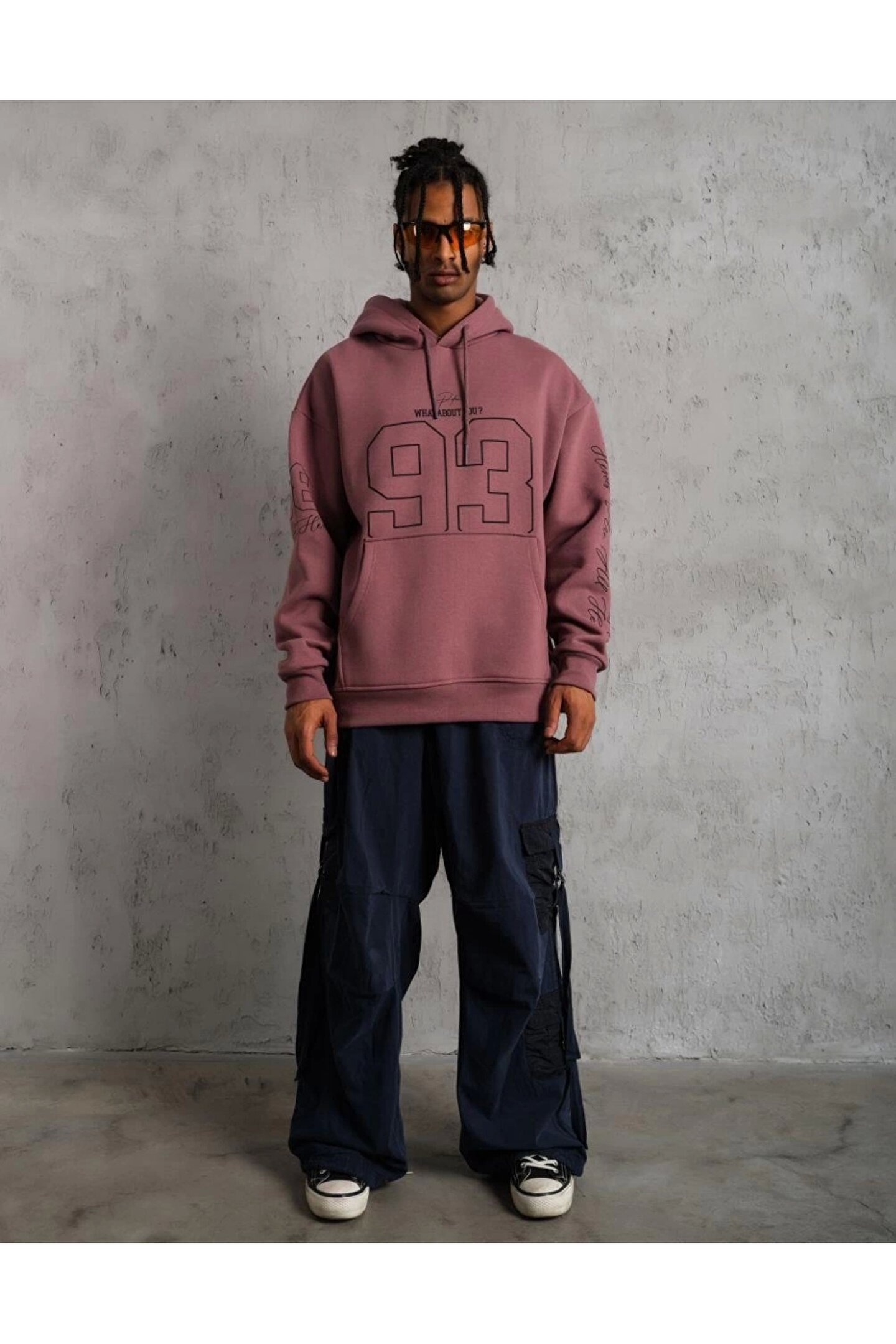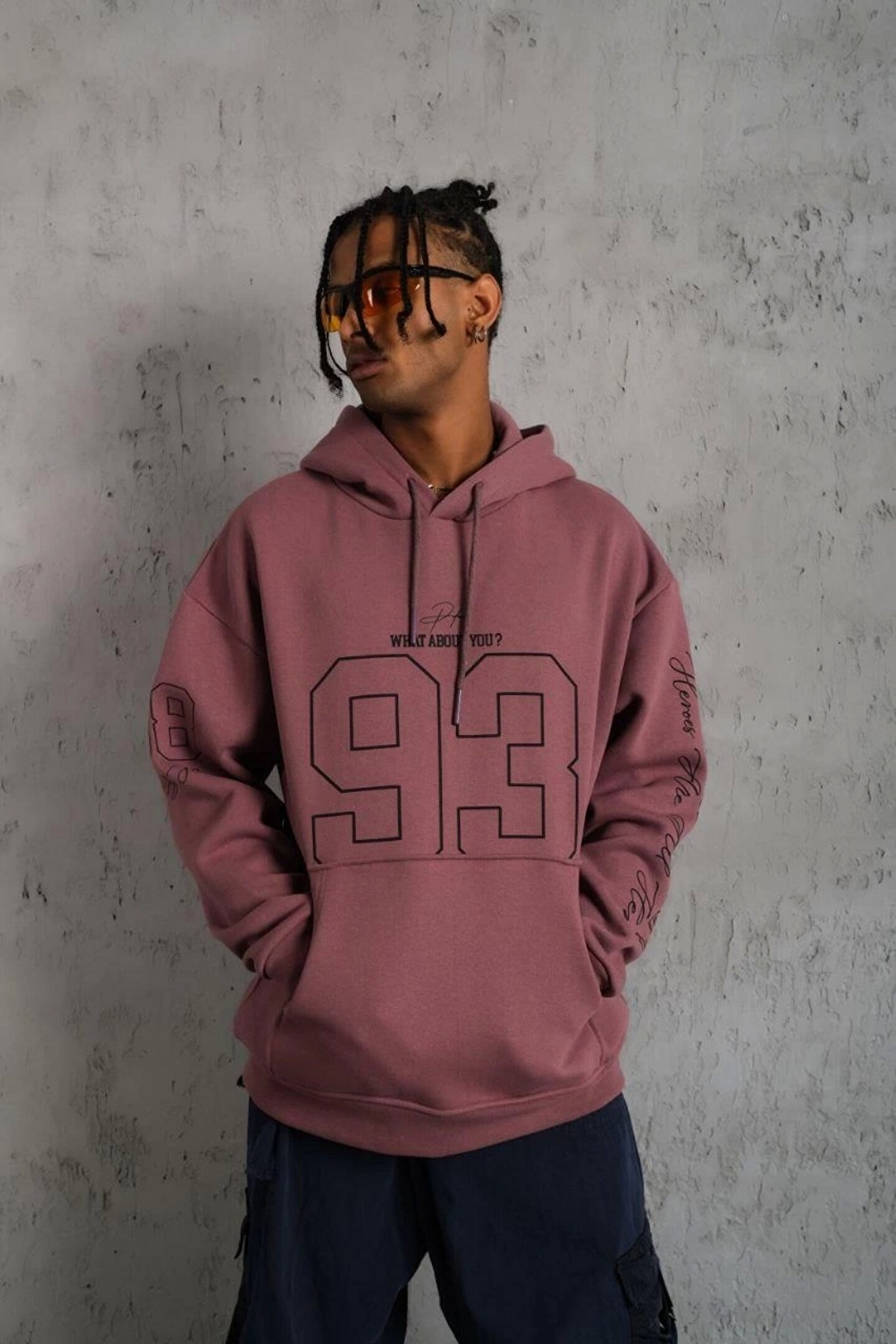 Erkek 93 Dijital Parça Baskılı Kapşonlu Sweat - Gül Kurusu