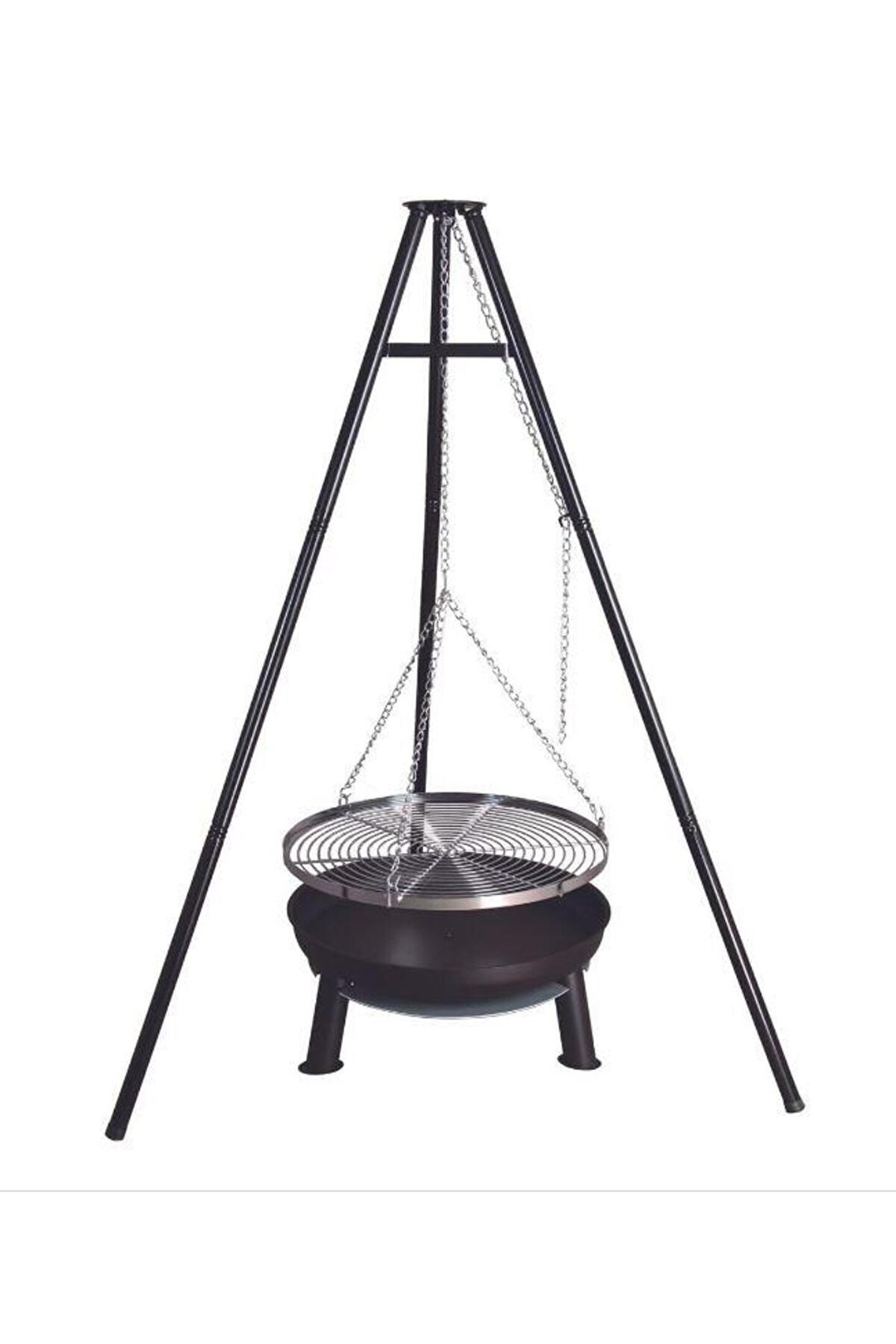 Gerçek bir kamp ateşi üzerinde yemek hazırlamanın otantik hissini yaşamak istiyorsanız bu tripod ızgara tam size göre. ; Üç sabit ayağı sayesinde tripod zeminde son derece stabildir. ; Izgarasının yüksekliği, birlikte verilen zincirle kolaylıkla ayarlanabilir. ; Krom kaplı çelikten yapılmış pişirme ızgarası sağlam ve dayanıklıdır. ; Bir tripod, bir zincir, bir ızgara ve ateş çukuru olarak gönderilmektedir. ; Siyah renk Model: Bunbury Malzeme: Krom kaplı çelik ızgaralı çelik çerçeve Boyutlar: 108 x 128 x 172 cm (U x G x Y) Izgara çapı: 65 cm Ağırlık: 17 kg Birlikte verilen zincir sayesinde ızgara ızgarasının yüksekliği kolayca ayarlanabilir;