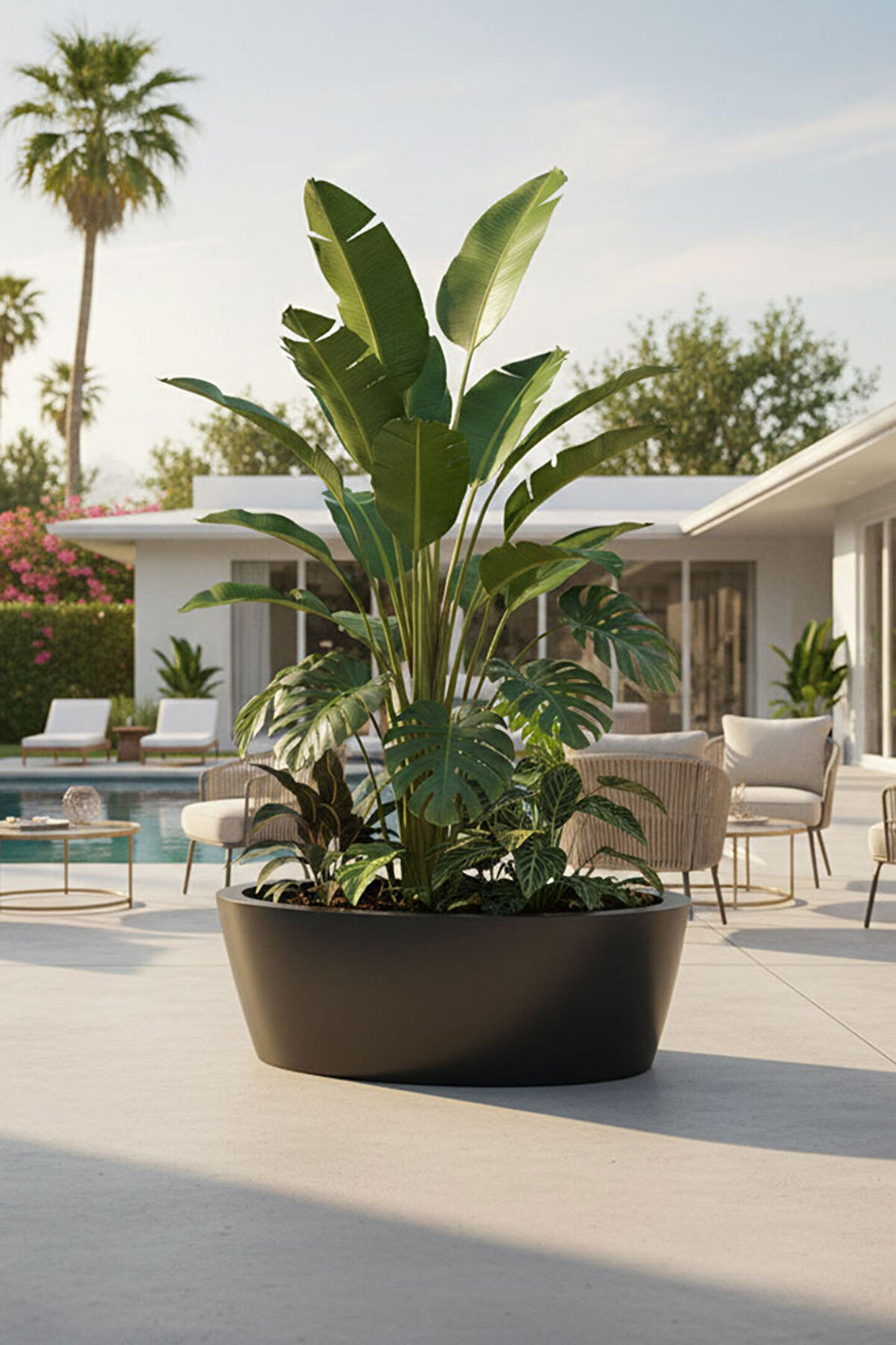 Aura Elipso, iç mekan ve dış mekan kullanımına uygun yapısıyla çok yönlü bir çözüm sunar. Salonunuzda bir odak noktası oluşturabilir, çalışma odanıza doğal bir dokunuş katabilir veya terasınızda, balkonunuzda, havuz başında modern bir peyzaj elemanı olarak kullanılabilir. Estetik ve dayanıklılığı bir arada sunarak, mekanlarınızın havasını anında değiştirir ve bitkilerinize hak ettikleri değeri verir.