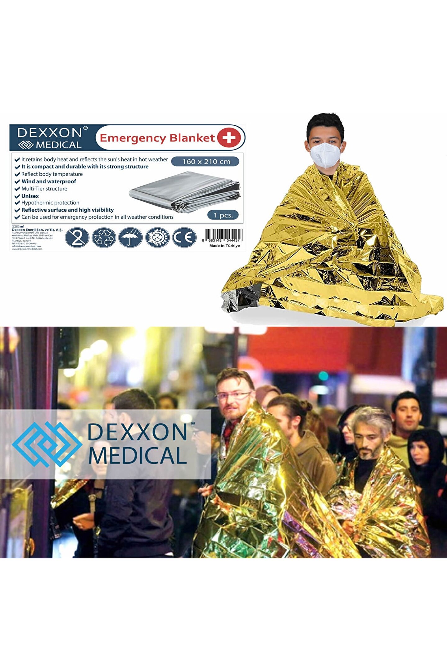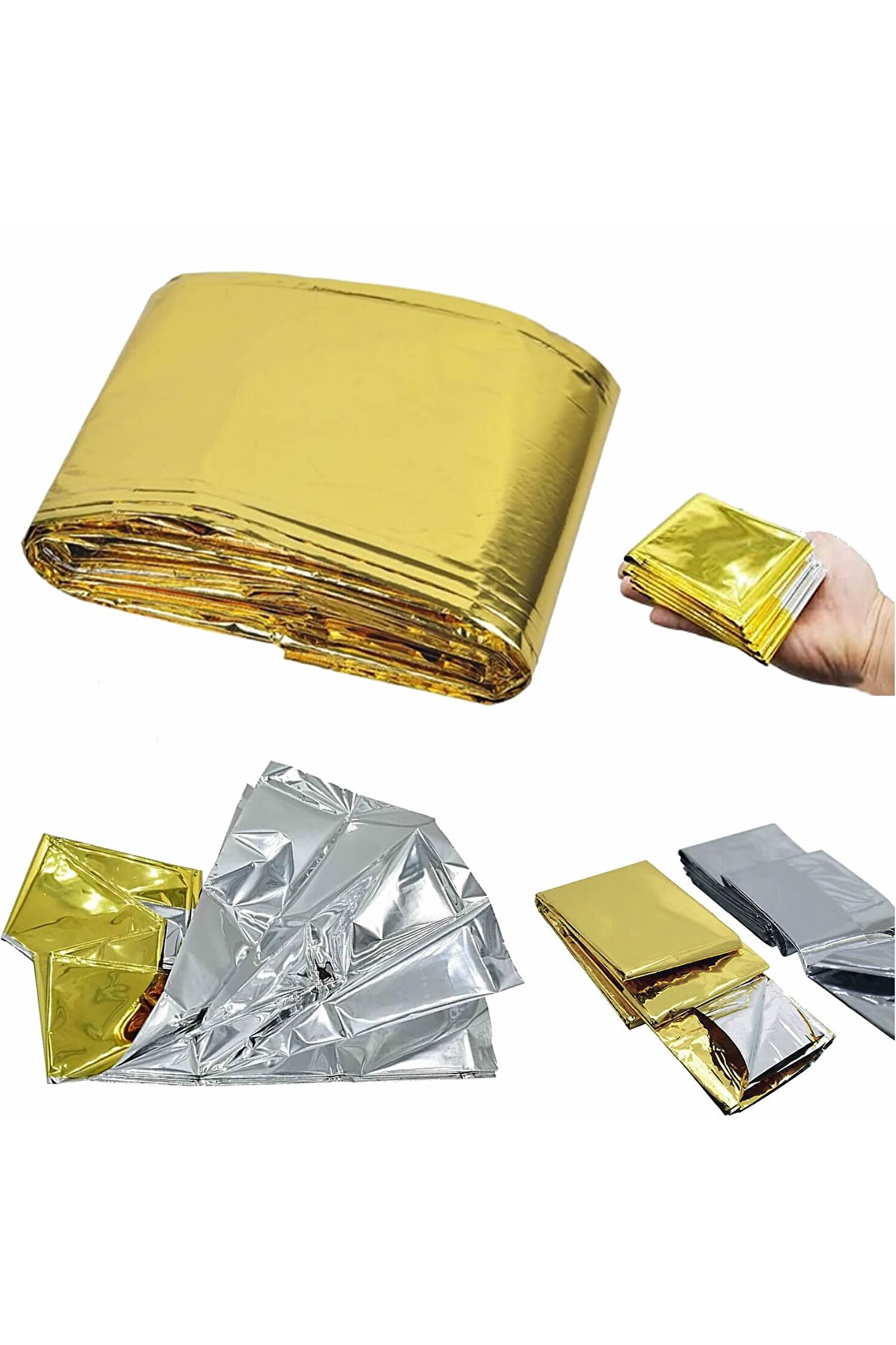 Açık ilk yardım kurtarma battaniye rüzgar geçirmez su geçirmez folyo termal battaniye acil durum battaniyesi kamp yürüyüş survival cankurtarma kiti aracı Acil durum battaniyesi fonksiyonlar: 1; Acil durum battaniyesi, vücut ısısını kazalardan sonra keskin düşüşten korumak için kullanılabilir; 2; Yansıtıcı film olarak kullanılabilir, kurtarıcılara bir sinyal gönderir; 3; Araç soğuk alanlarda veya geceleri bozuldu, vücudu sıcak tutabilir; Vücut ısısının % 90% 'unu korur/yansıtır; 4; Acil durum battaniyesi yağmurda panço olarak kullanılır; 5; Uyku tulumu koymak, daha iyi yalıtım; 6; Barınak, zemin örtüsü, battaniye vb; Olarak kullanılabilir; Özellikler: Özelliği: Kompakt boyutu, hafif, taşıması kolay, tek kullanımlık, su geçirmez ve rüzgar geçirmez Malzeme: Pet Renk: Gümüş/altın Boyut: 210*160cm; (1 inç = 2; 54 cm);;