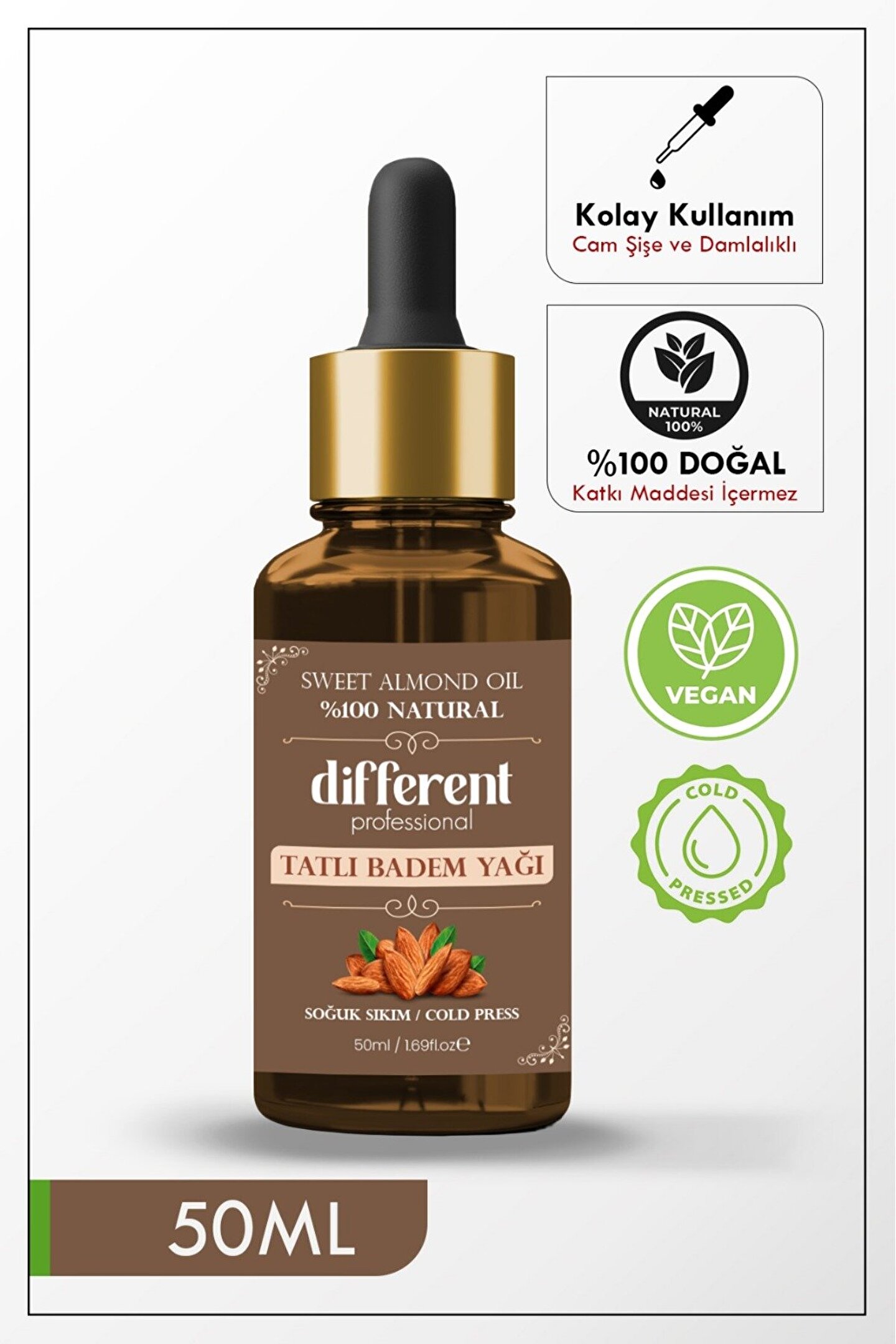 -Tatlı Doğal Badem Yağı Saf Soğuk Pres 50 ml-