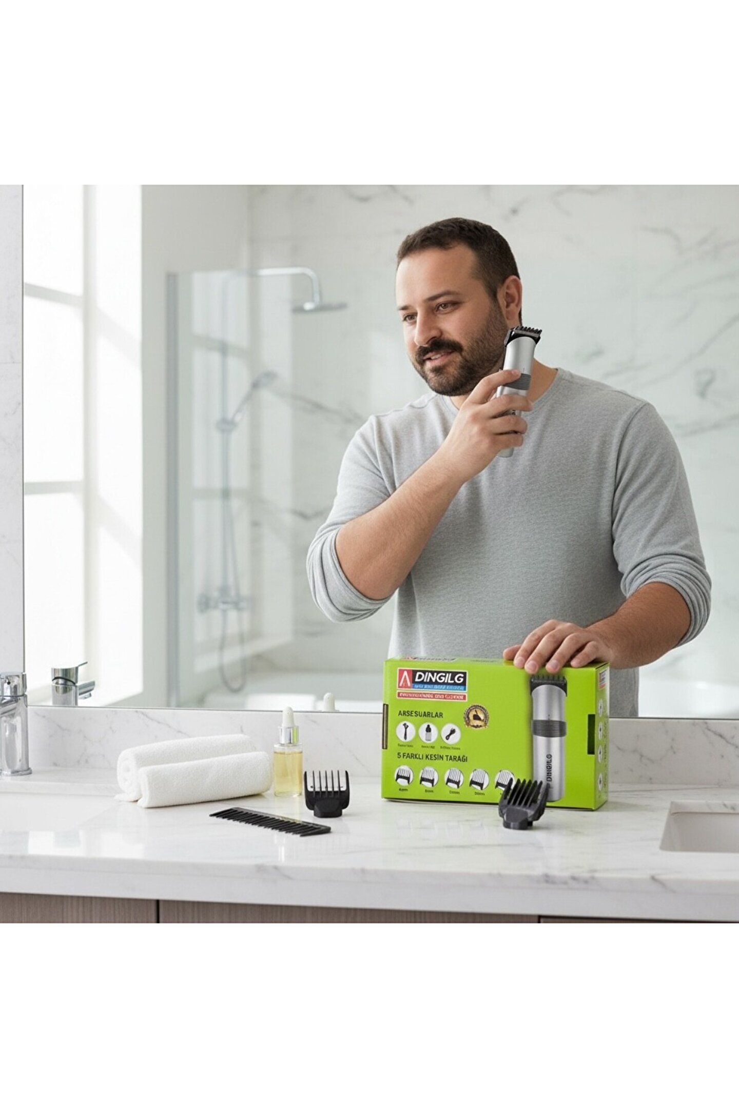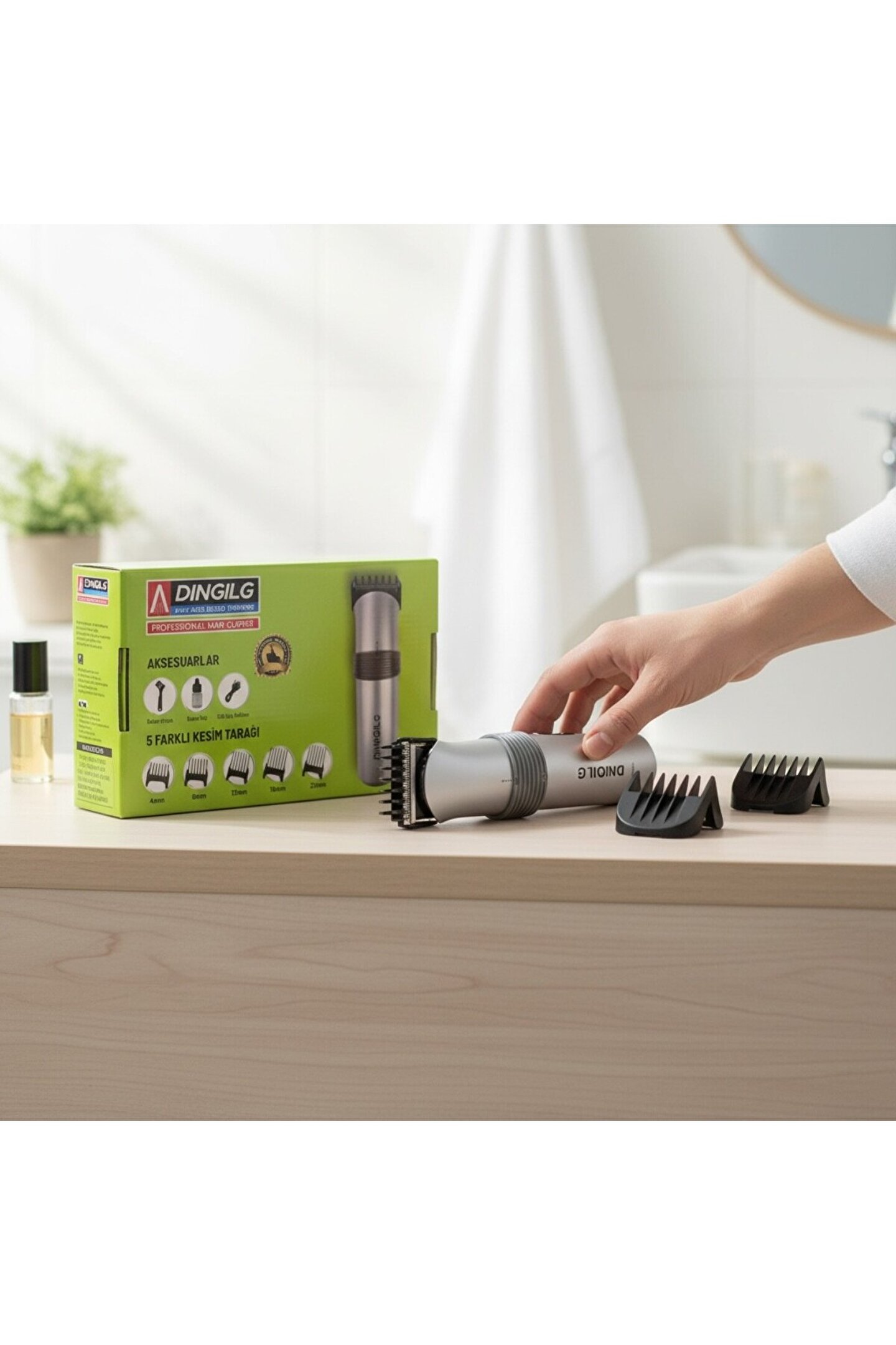 609 Profesyonel Şarjlı Saç Sakal Kesme Tıraş Traş Makinesi Seti Profesyonel Şarjlı Saç Sakal Kesme Traş Tıraş Makinesi Hem hızlı hem de oldukça pratik bir kullanımı garantileyen tıraş makinesi, özellikle yoğun bir programı takip etmek zorunda olduğunuz günlerde zaman ve etki konusunda kurtarıcınız olacak. ; Pratik kullanıma imkan veren tıraş makinesi. ; ------------------------------------------------------------- Sakal kesme makinesi şekilli ve eşit boyda sakallar için en ideal ürünlerdir. ; Bu ürün aynı zamanda saç kesimi için de kullanılabilen modelldir. ; Eğer sakallarınızı tamamen kesmek yerine uzadıkça şekillendirmek istiyorsanız sakallı bir dış görünümü seviyorsanız, saç ve sakal kesimi olarak da kullanabileceğiniz bu ürün tam size göre ------------------------------------------------------------- Kuaförlerin tercihi bu ürün hem evler de hemde kuaförler de kullanılmak üzere tasarlanmış profesyonel saç kesme, ense favori düzeltme makinesidir.Uzun ömürlü paslanmaz çelik alaşım, hem kesme hem düzeltme için kesici dişler. ; Daha güçlü motoru ve mükemmel izolasyonu sayesinde daha sessiz çalışır. ; Ergonomik yapısı ve harika tasarımı ile el tarafından kolay kavranır ve kayma yapmaz. ; ------------------------------------------------------------- Özellikler Profesyonel elmas keskinliğinde bıçaklar Şarj edilebilmesi sayesinde kablosuz kullanım olanağı Tam şarj sonrasında 60 dakika kullanılabilir dayanıklı batarya Hassas kesim için paslanmaz çelik bıçaklar Açma/kapama anahtarı 2 fonksiyonlu hız Paket İçeriği Tıraş Makinesi Şarj Adaptörü 5 Adet Kesim Tarağı Yağ Şişesi Temizleme Fırçası;