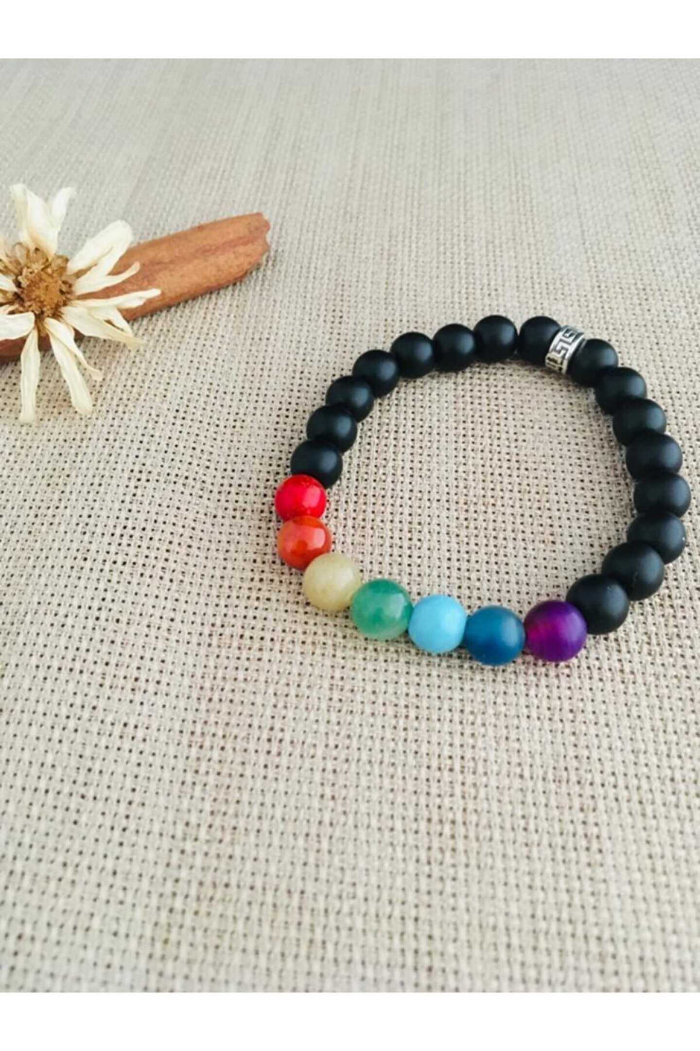7 Çakra Oniks Bileklik Tüm tasarımlarımızda doğal taş ve rudrakshatohumları kullanılmaktadır. ; Ürünlerimizi hazırlarken sağlamlığı kanıtlanmış ince paraşüt iplerikullanılmıştır. ; Kullanılan doğal aşlar ve rudrakshatohumları doğal yapıları nedeniyle farklılık g ö sterebilmektedir.T ü m tasarımlarımız el yapımıdır. ; Kök Çakra (kırmızı): Mercan Sakral Çakra (turuncu): Akik Göbek Çakra (sarı): Akik Kalp Çakrası (yeşil): Akik Boğaz Çakrası (Mavi): Turkuaz Üçüncü Göz Çakrası (Çivit Mavisi): Akik Taç Çakra (Mor): Göz Akik;