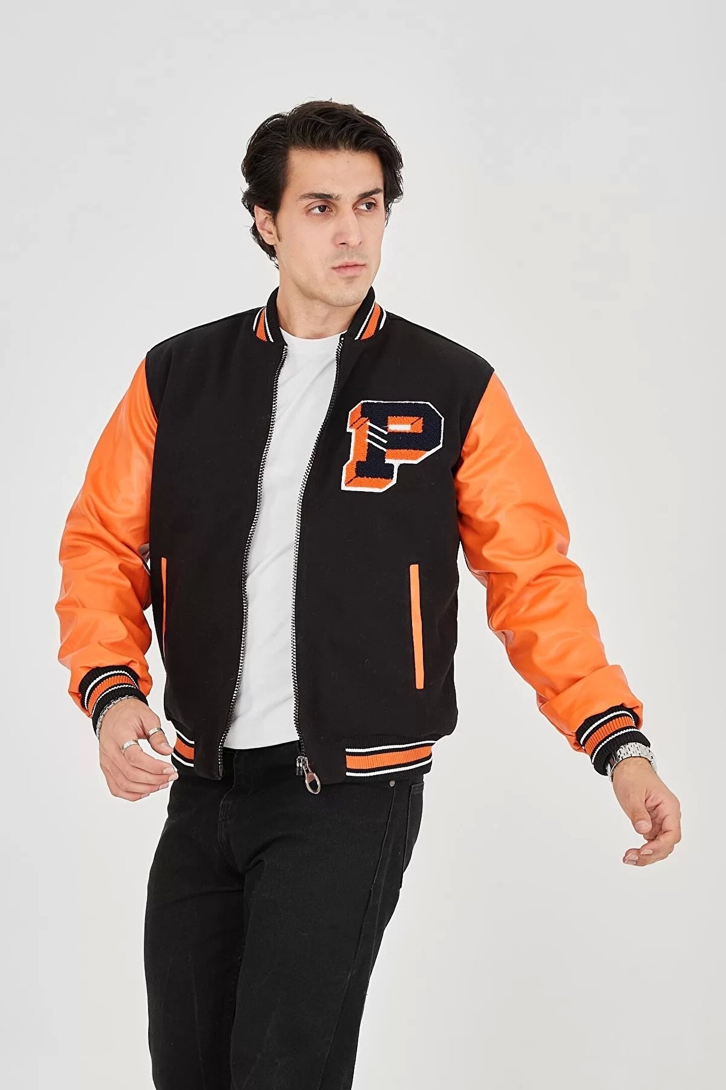 dododan Erkek İçten Elyaf ve Astarlı Kolları Suni Deri Ceket - Turuncu