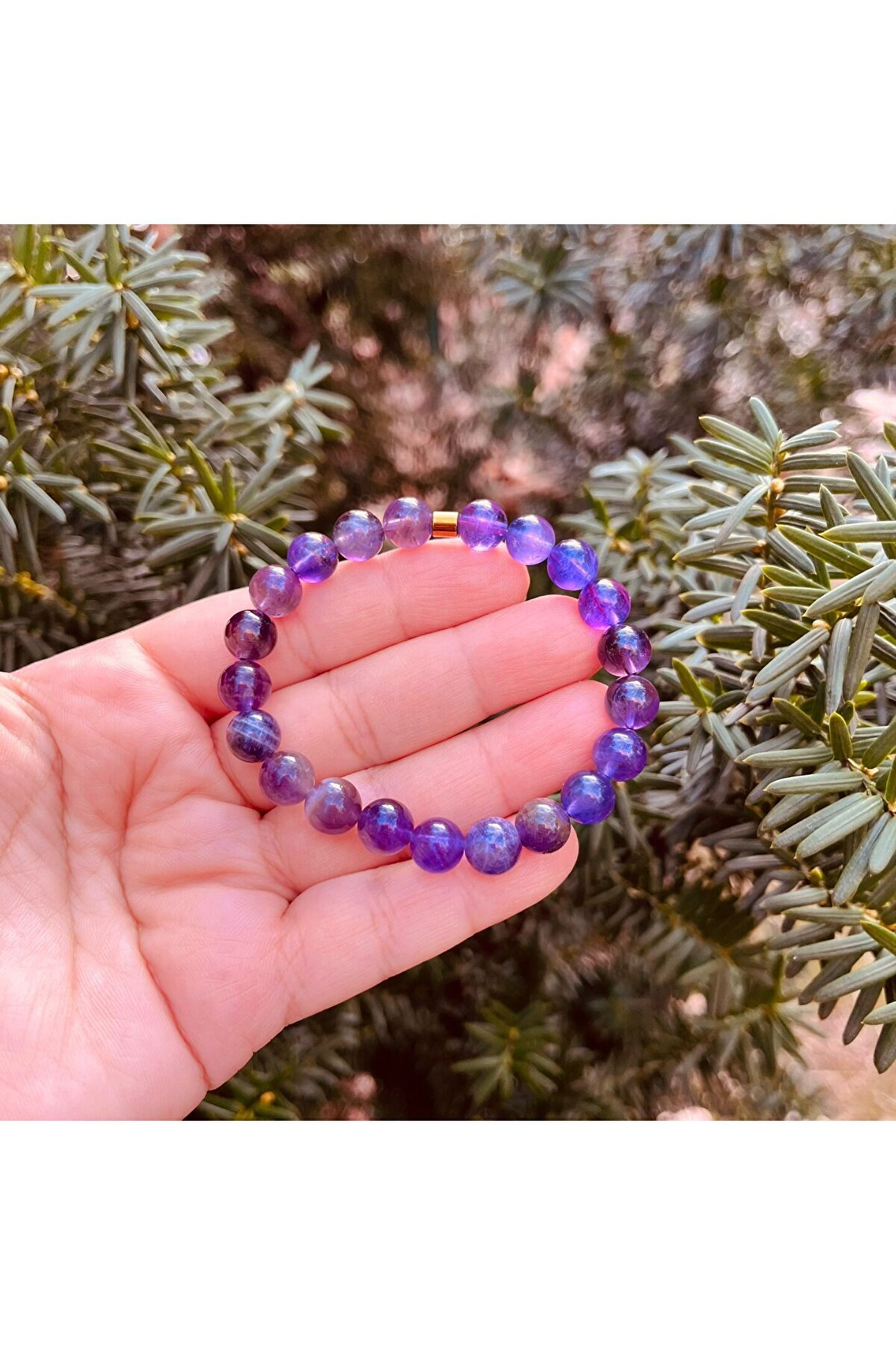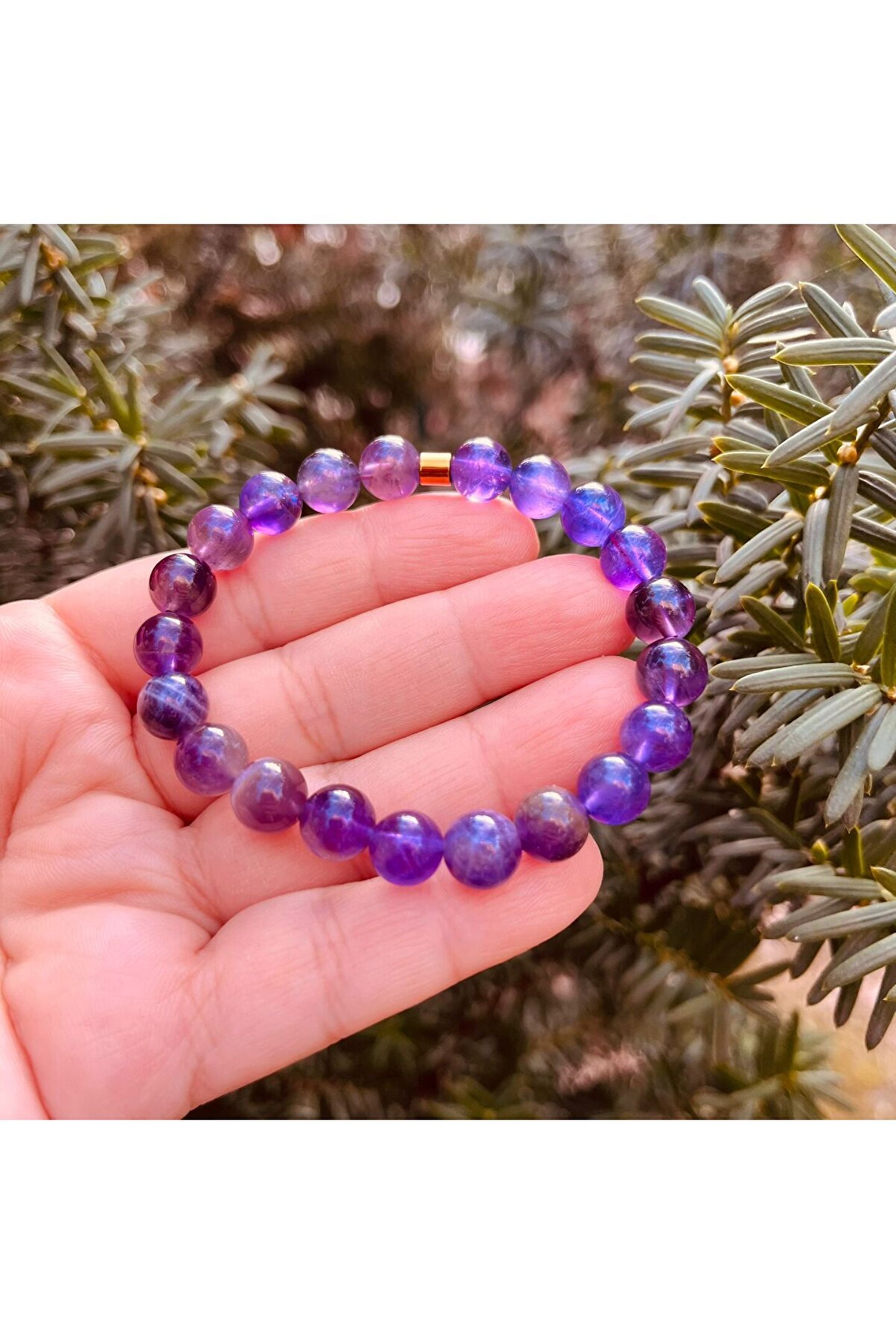 Ametist Doğal Taş Bileklik 8 MM Tüm ürünlerimiz en iyi kalite doğal taşlardanoluşmaktadır Doğal taşlar doğada da aynı renk ve dokulardaçıkmadığı için görseldeki üründen ufak farklılıklar gösterebilir.; ; Tüm ürünlerimizi yedek taş ve misina ile hediye paketiyaparak göndermekteyiz Siparişinizden sonra bilek ölçüsü belirtirsenizistediğiniz ölçüde hazırlanır.; ; Ürünler gerçek doğal taş oldukları için renk veşekillerinde ufak değişiklikler gösterebilir (gün ışığı,enerji ve tersebebiyle) Ürünlerinizi şampuan,sabun,kolonya,deterjan gibikimyasallardan korumanız gerekmektedir.;