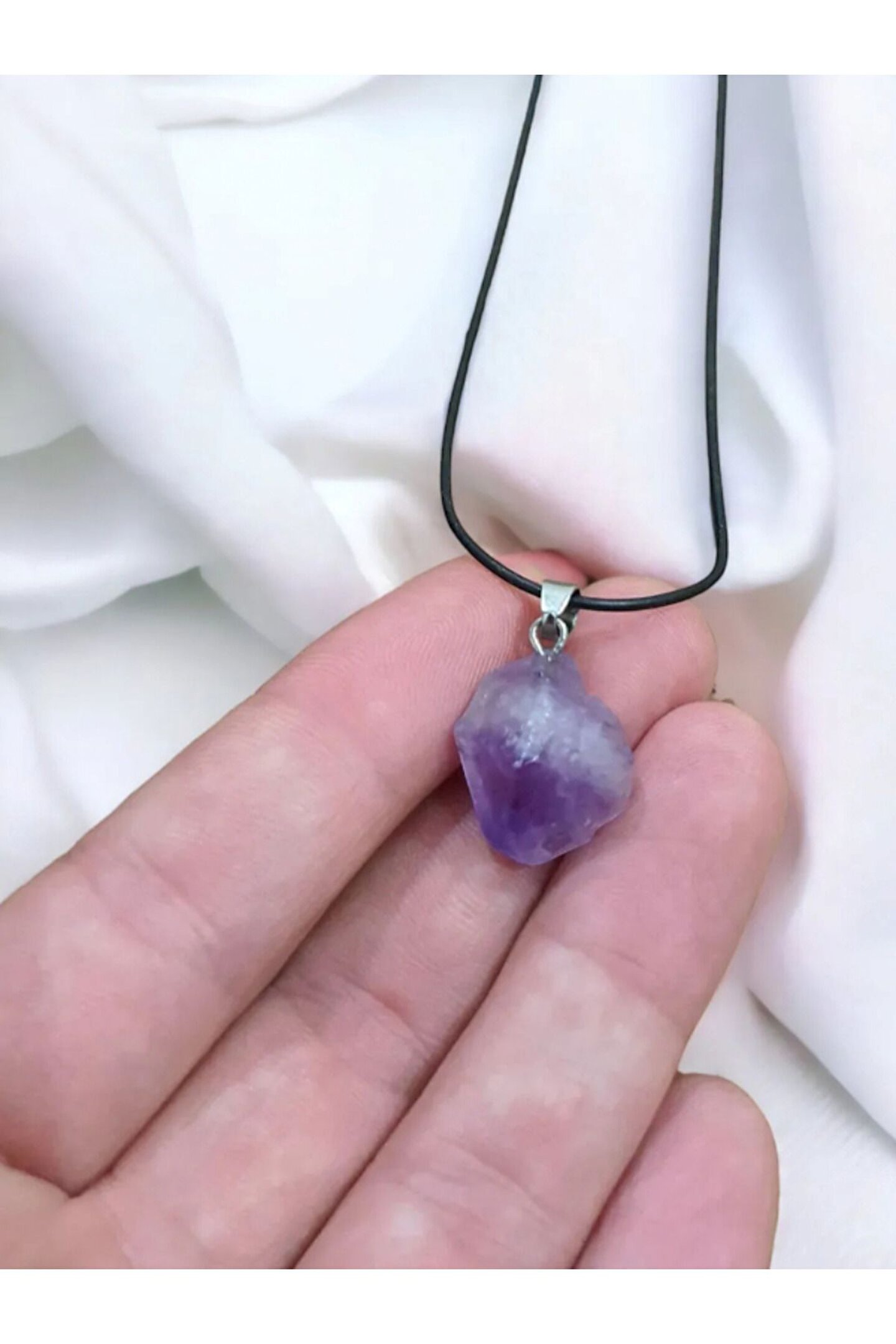 DOĞAL TAŞ CENNETİ AMETİST DOĞAL TAŞ KOLYE UCU (SERTİFİKALI)(DERİ İPLİ)