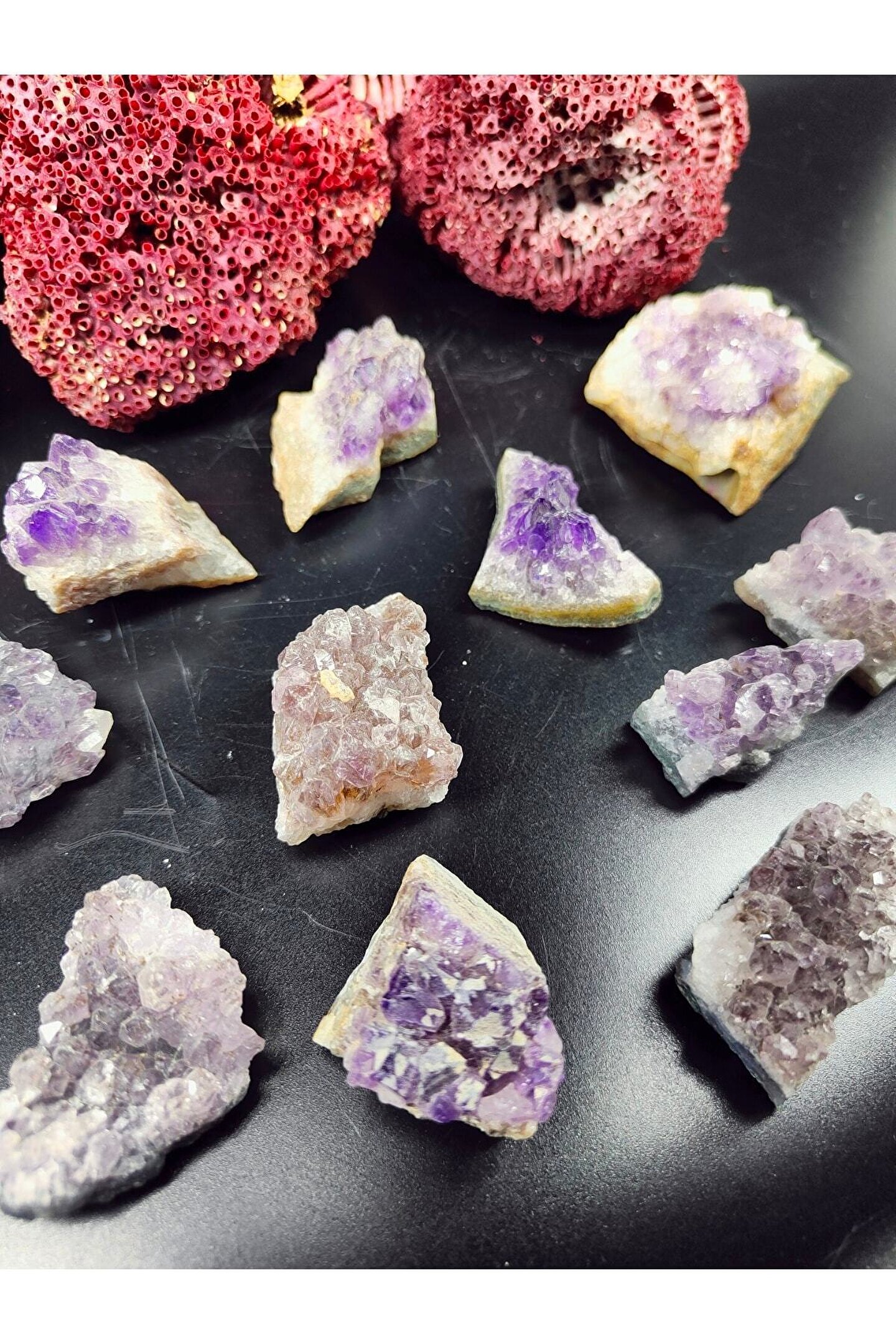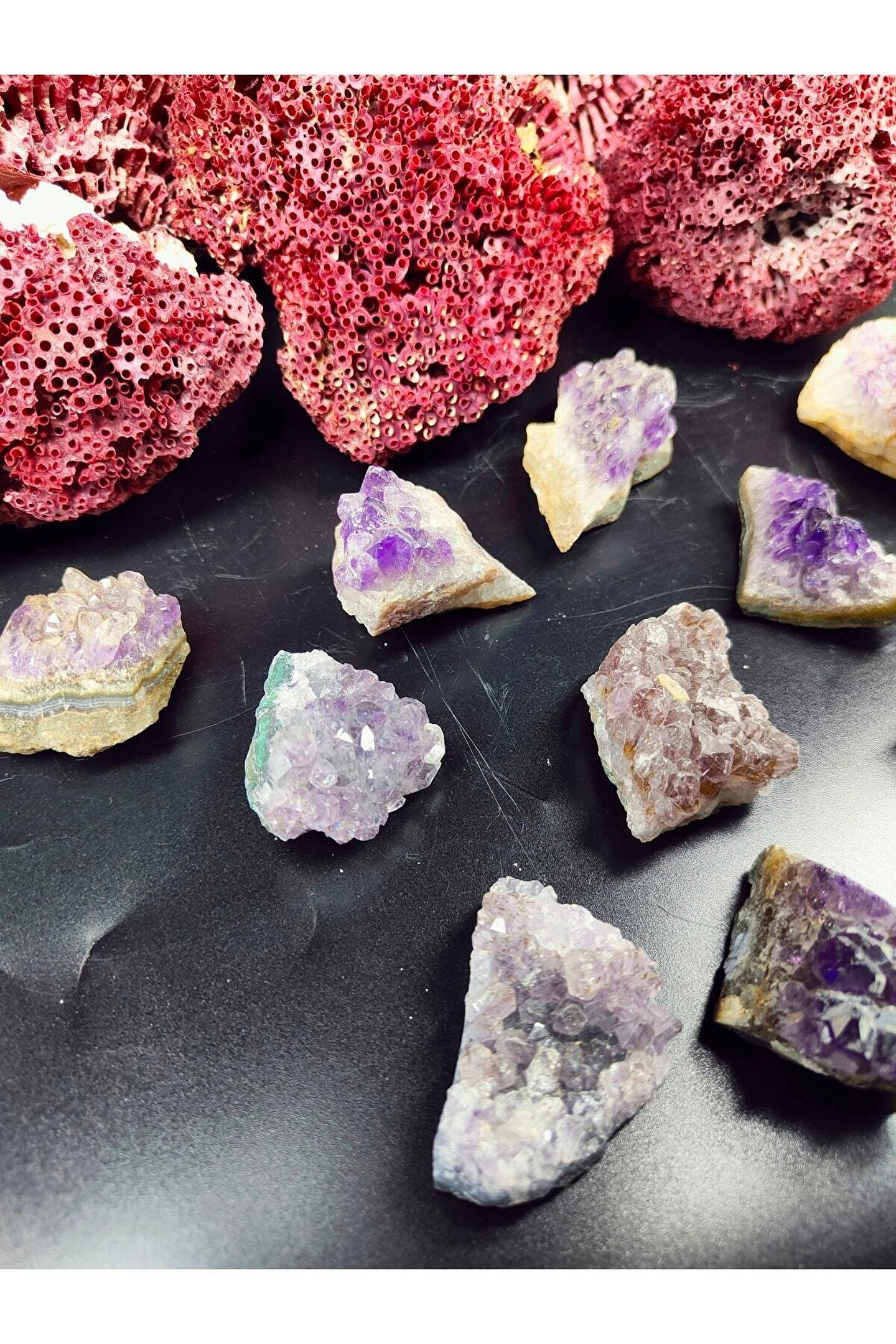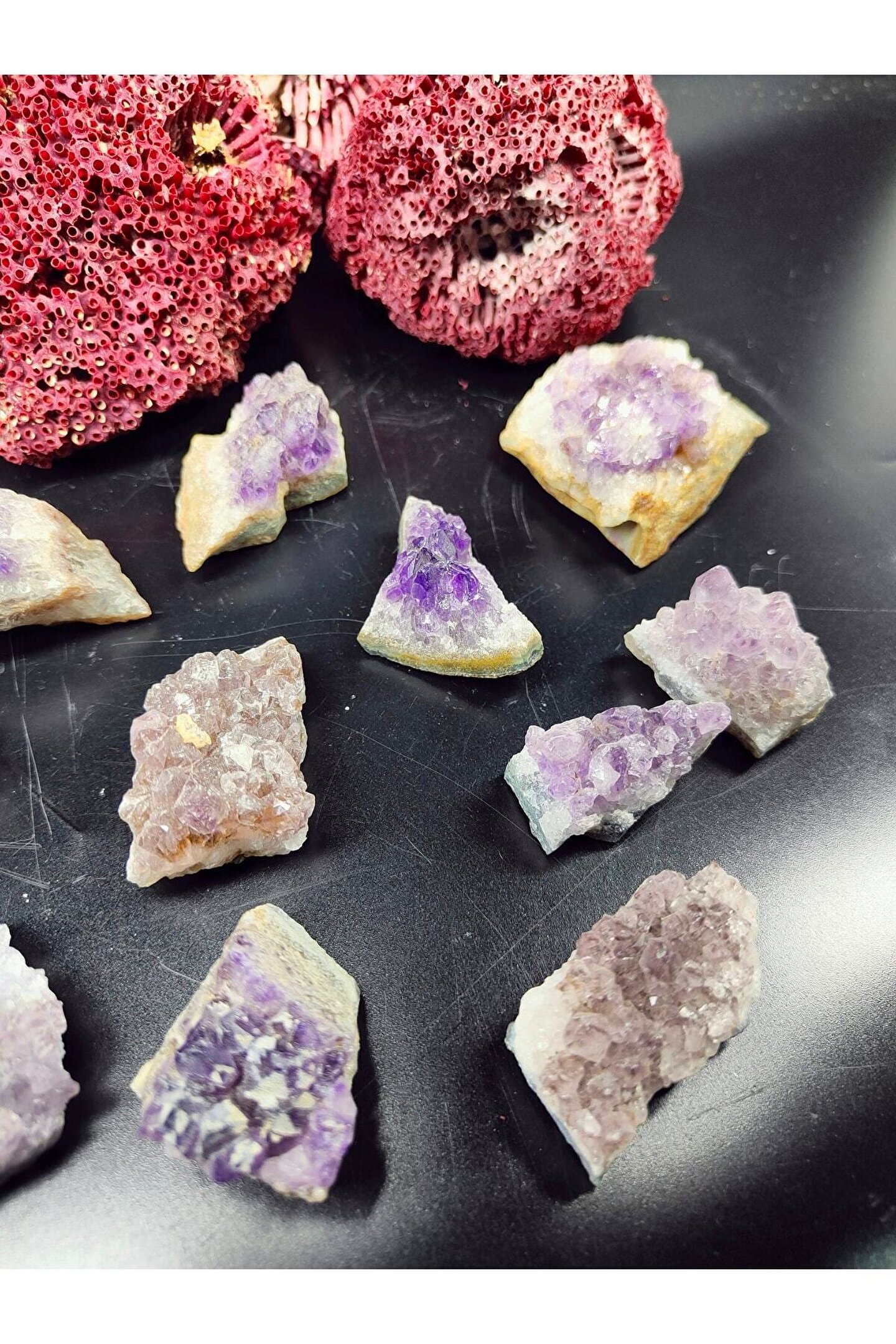 ÜRÜN AĞIRLIĞI 30-45 GRAM ARASINDA OLUP 2x3 CM ÖLÇÜLERİNE SAHİPTİR.; ; SİPARİŞ DOĞRULTUSUNDA GÖRSELDE BULUNAN AMETİST KAYALARDAN STOK DURUMUNA GÖRE RASGELE GÖNDERİLECEKTİR.; ; -----ÖZELLİKLERİ----- -Doğal bir sakinleştiricidir.; ; -Ruhsal farkındalığı arttırır ve meditasyonu geliştirir.; ; -Strese karşı koruyucudur.; ; -Dinlendirici uyumayı, dinç kalkmayı sağlar.; ; -Kanser oluşumunu engeller.; ; -Kan şekerini dengeler.; ; -Sindirim sistemini düzenler.; ; -Ortamdaki olumsuz enerjiyi olumlu enerjiye çevirir.; ; -Zihin için oldukça etkilidir.; ; -Bedeni dinç tutar.; ; -Eklem ağrılarını tedavi ederek daha rahat hareket etmeyisağlar.; ; TÜM ÜRÜNLERİMİZ 30 YILLIK DOĞAL TAŞ ŞİRKETİMİZ TARAFINDAN VE DOĞALLIK SERTİFİKALARIYLA GELİR.;
