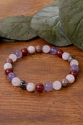 Aşk Sevgi Bilekliği (Pembe Kuvars, Ametist, Obsidyen, Güneş Taşı ve Rodonit Taşı)