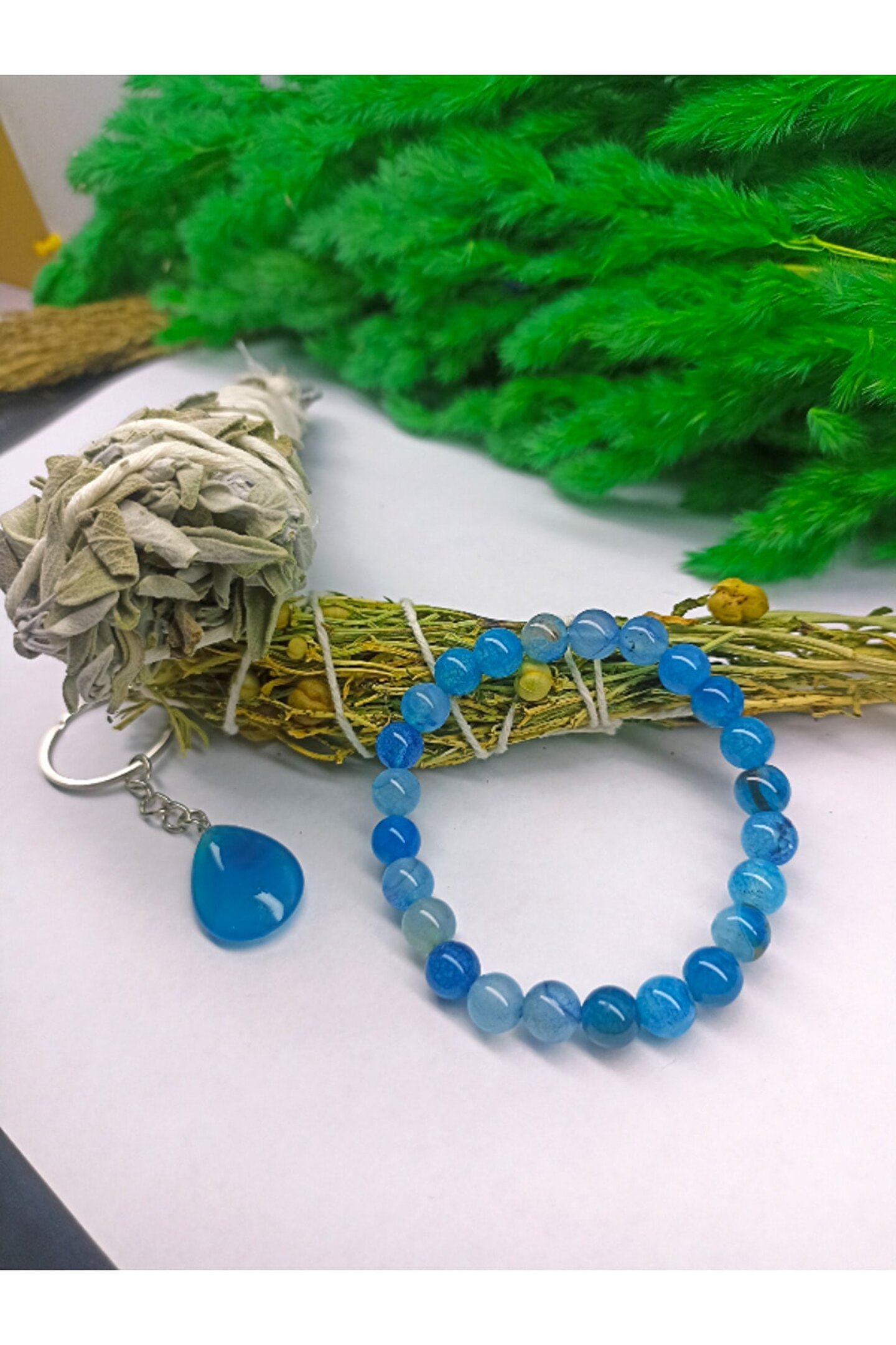 ÇİFT TÜTSÜLÜ MAVİ AKİK DOĞAL TAŞ SET (SERTİFİKALI)