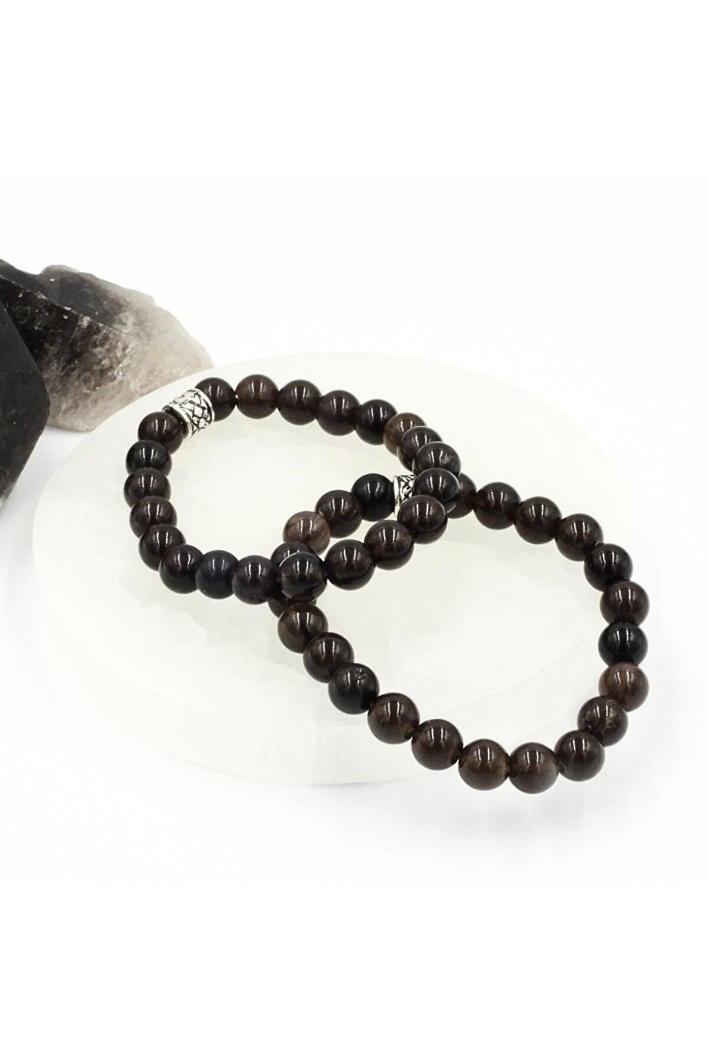 Doğal şifalı taş bileklik, 8 mm boyutunda dumanlı kuvars kullanılarak üretilmiştir ve bu sayede hem şıklığı hem de doğanın gücünü bileğinizde taşımanızı sağlar; Doğal taş materyali ile üretilen bu bileklik, her türlü kıyafetle uyum sağlayarak günlük kullanım için ideal bir aksesuardır; Dumanlı kuvars taşı, enerji dengesi ve pozitif enerjiyi artırıcı özellikleri ile bilinir; bu da onu hem kişisel bakım hem de hediye olarak tercih edilen bir ürün haline getirir;