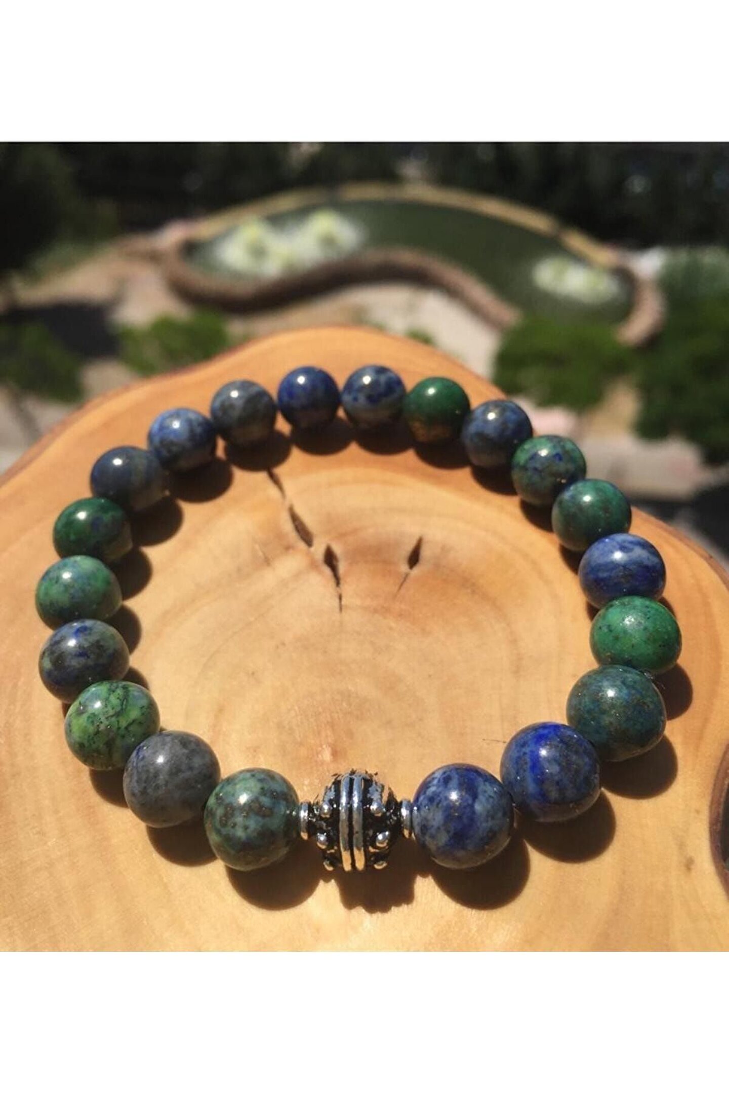Doğal taş bileklik, şıklığınızı tamamlayacak zarif bir aksesuardır; Azurit taşı kullanımı, bilekliğe benzersiz bir renk ve desen sunar; Doğal taş materyali ile hem dayanıklılık hem de estetik bir görünüm sağlar; Her bileklik, el yapımı olup özgün bir tasarıma sahiptir;