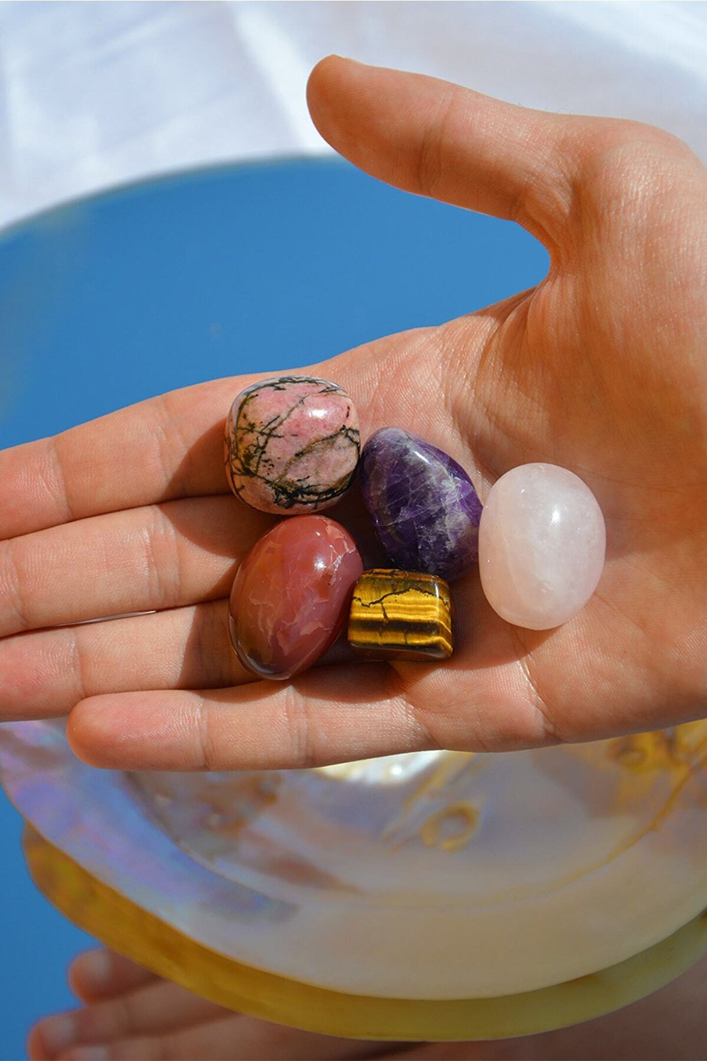 - Doğal taşların eşsiz güzelliğini evinize taşıyan bu set, her türlü dekorasyonla uyum sağlayacak şekilde tasarlanmıştır; - Rodyum, akik, ametist, pembe kuvars ve kaplan gözü gibi farklı türlerdeki doğal taşlardan oluşan bu set, mekanınıza enerji ve sıcaklık katar; - Doğal taşların benzersiz desenleri ve renkleriyle dikkat çeken bu set, hem işlevsel hem de estetik bir dokunuş sunar; - Her bir taşın kendine özgü özellikleriyle dikkat çeken bu set, evinizin atmosferini zenginleştirir ve huzurlu bir ortam yaratır; - Doğal taşların sağladığı şıklığı ve dayanıklılığı evinizin her köşesine taşıyarak, uzun yıllar boyunca keyifle kullanabilirsiniz;