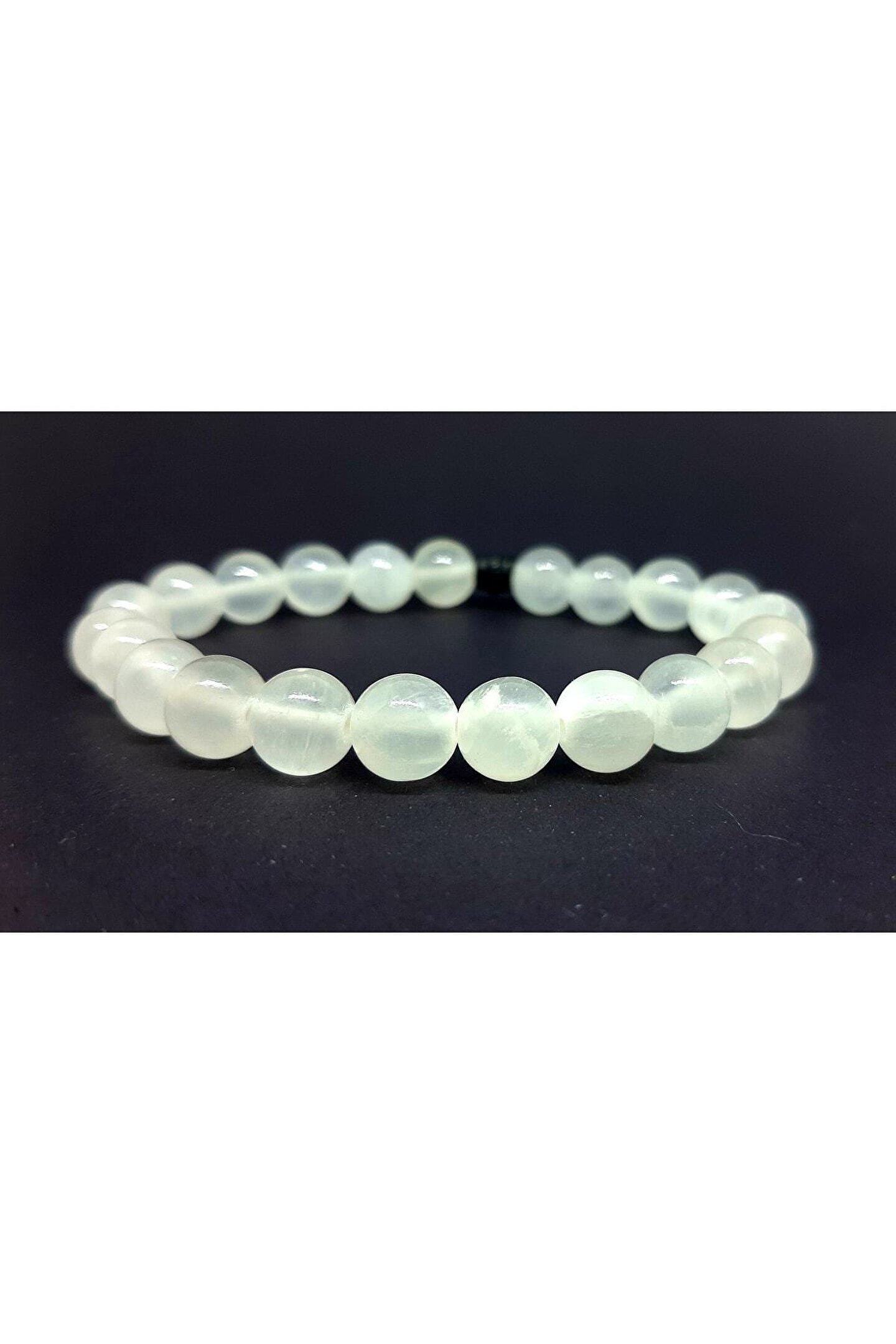Doğal taş selenit bileklik, şıklığınızı tamamlayacak zarif bir aksesuardır; Antalya'dan gelen orijinal selenit taşı, benzersiz desenleriyle göz alıcı bir görünüm sunar; 8mm kalınlığındaki bileklik, hem rahatlık hem de estetik bir kullanım sağlar; Doğal taş materyali sayesinde her bilek boyutuna uyum sağlayarak konforlu bir deneyim sunar; Bijuteri bileklik, günlük kullanım için idealdir ve her türlü kıyafetle kolayca kombinlenebilir;