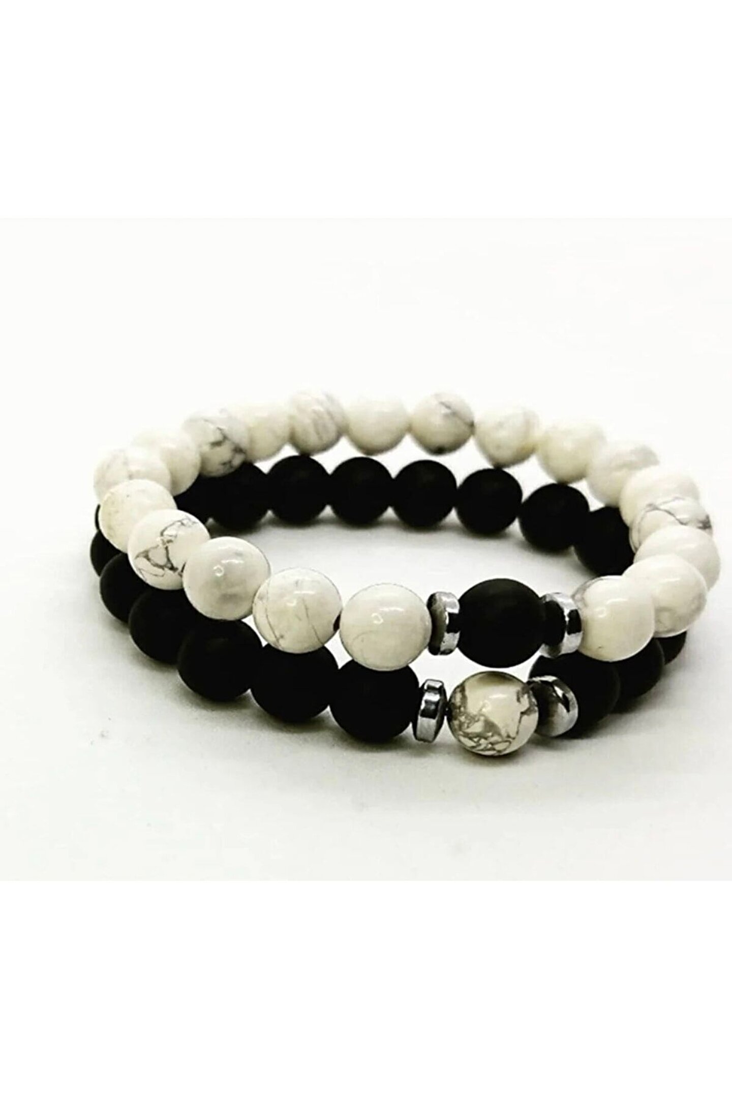 Doğal taş kullanımı sayesinde her bileklik benzersiz ve özgün bir görünüm sunar; Oniks ve havlit gibi doğal taşların zarif dokusu, bilekliğe sofistike bir hava katar; Taşın doğal yapısı, bilekliğin hem şık hem de dayanıklı olmasını sağlar; Doğal taşların renk ve desen çeşitliliği, her zevke uygun seçenekler sunar; El yapımı olması, her bir bilekliğin kişisel bir dokunuşla tamamlanmasını garanti eder;