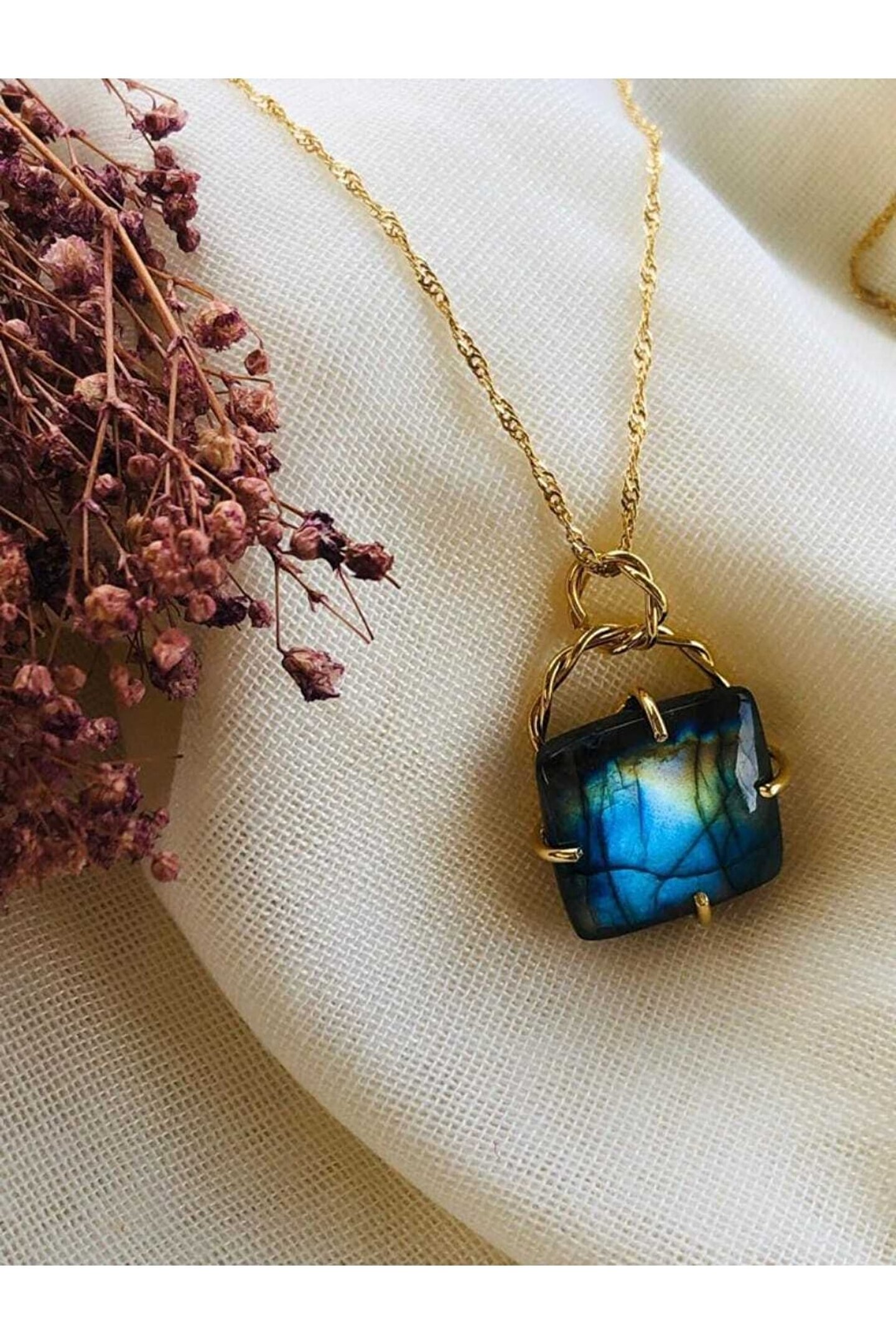 Doğal taş kullanımıyla öne çıkan bu kolye, şıklığınızı tamamlayacak zarif bir aksesuardır; Gökkuşağı labradorit taşı, benzersiz renk tonlarıyla göz alıcı bir görünüm sunar ve her türlü kıyafetle uyum sağlar; Altın kaplama detayları, kolyenin hem dayanıklılığını hem de estetik değerini artırarak uzun süreli kullanım için idealdir; 47 cm uzunluğundaki zincir, rahat bir kullanım sunarken, farklı boy ve tipte kolyelerle kolayca kombinlenebilir; Sertifikalı ürün olması, kalite ve orijinallik konusunda güven verir ve özel günlerinizde tercih edebileceğiniz mükemmel bir hediye seçeneği oluşturur;
