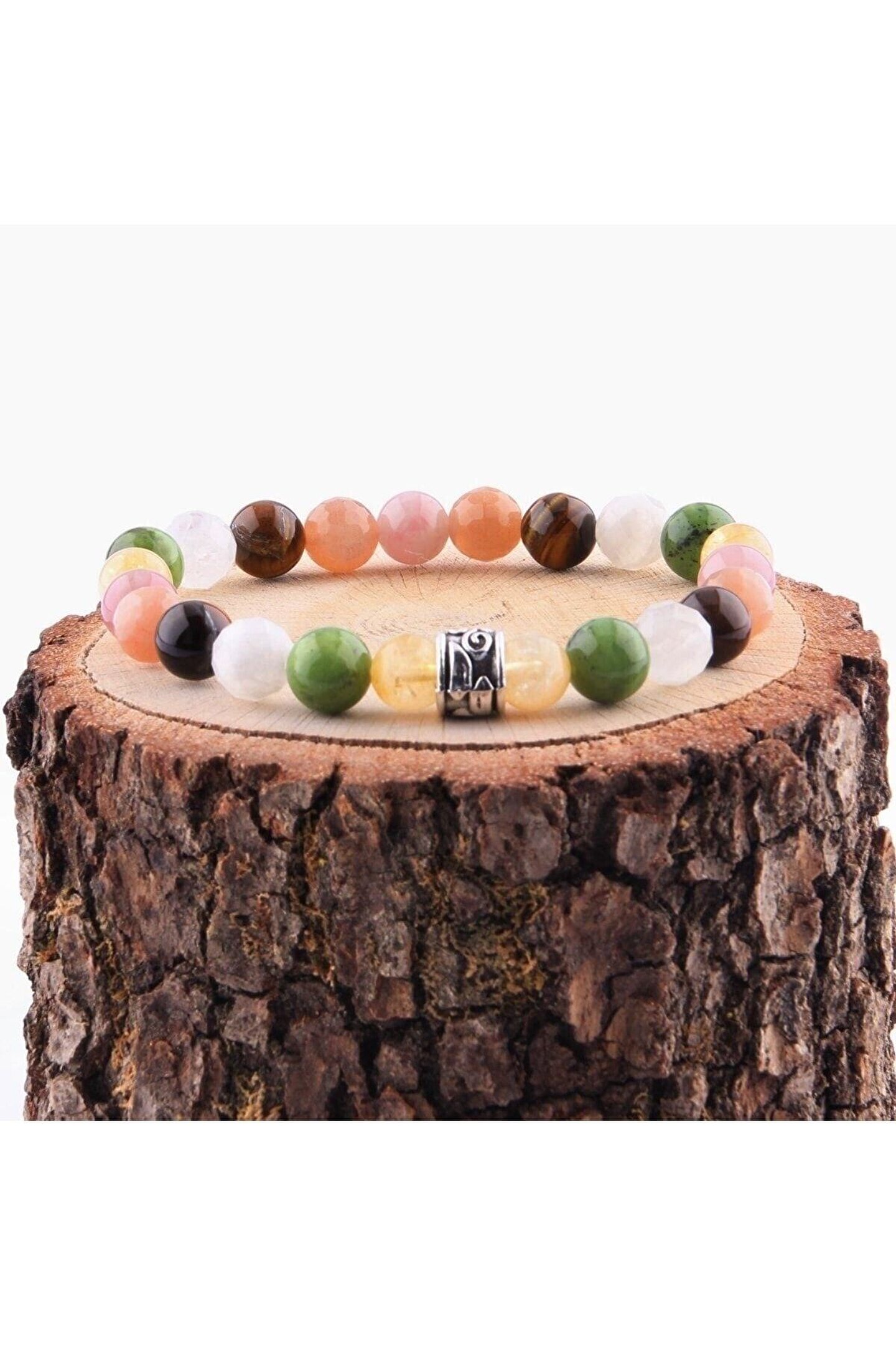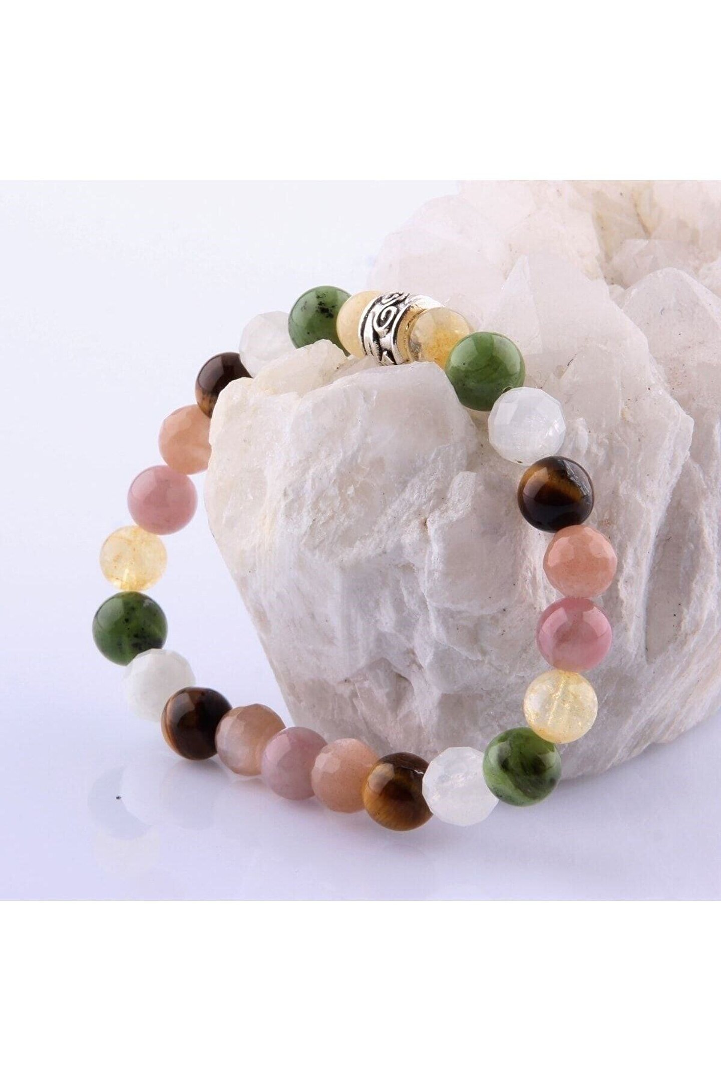 DOĞAL TAŞ CENNETİ Güneş Taşı, Ay Taşı, Pembe Kuvars, Kaplan Gözü, Dönüşümlü Sitrin Doğal Taş 8 Mm Bileklik