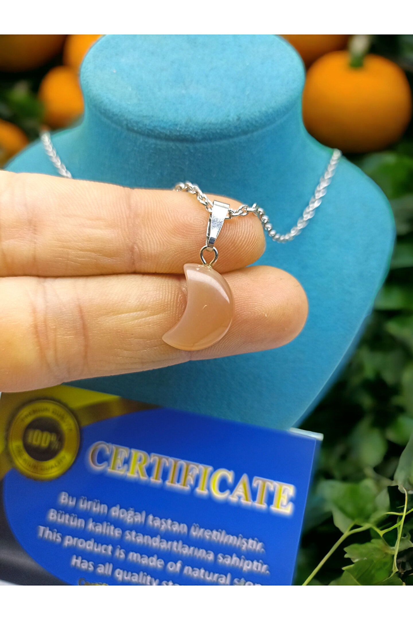 Saf doğal taş kullanılarak üretilmiş, her bir kolye ucu benzersiz ve otantik bir görünüm sunar; Güneş taşı, kolye ucu olarak seçilerek hem şıklığı hem de enerjiyi yansıtır; Sertifikalı ürün olması, kalite ve güvenilirlik açısından önemli bir güvence sağlar; Doğal taşın eşsiz dokusu ve renk tonları, her kıyafetle uyum sağlayarak kişisel tarzınıza zarif bir dokunuş ekler;