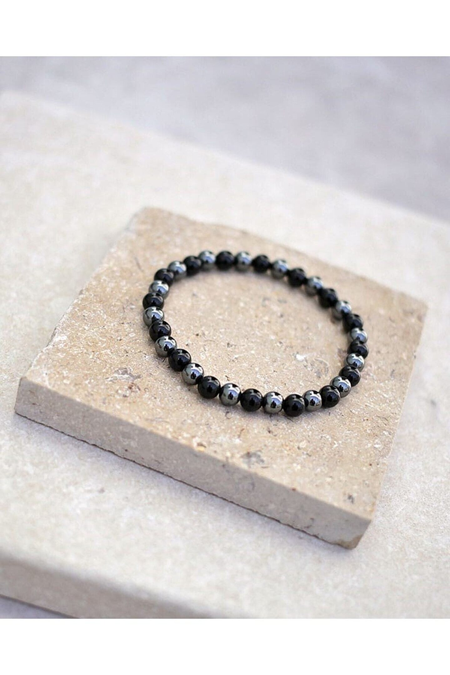 Doğal taş bileklik, şıklığınızı tamamlayacak zarif bir aksesuardır; Hematit ve karlı obsidyen taşlarından üretilmiş olup, benzersiz ve doğal bir görünüm sunar; 8 mm boyutundaki bu bileklik, hem günlük kullanım hem de özel günler için idealdir; Doğal taş materyali sayesinde her bilek boyutuna uyum sağlar ve konforlu bir kullanım sunar;